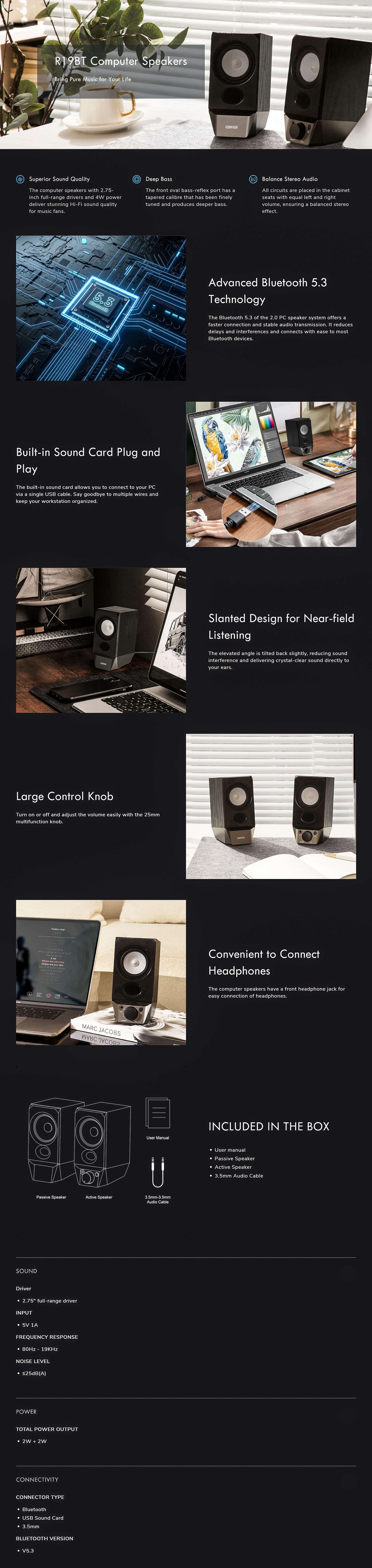 • EDIFIER R19BT 2.0 PC Speaker with Bluetooth 5.3, Black