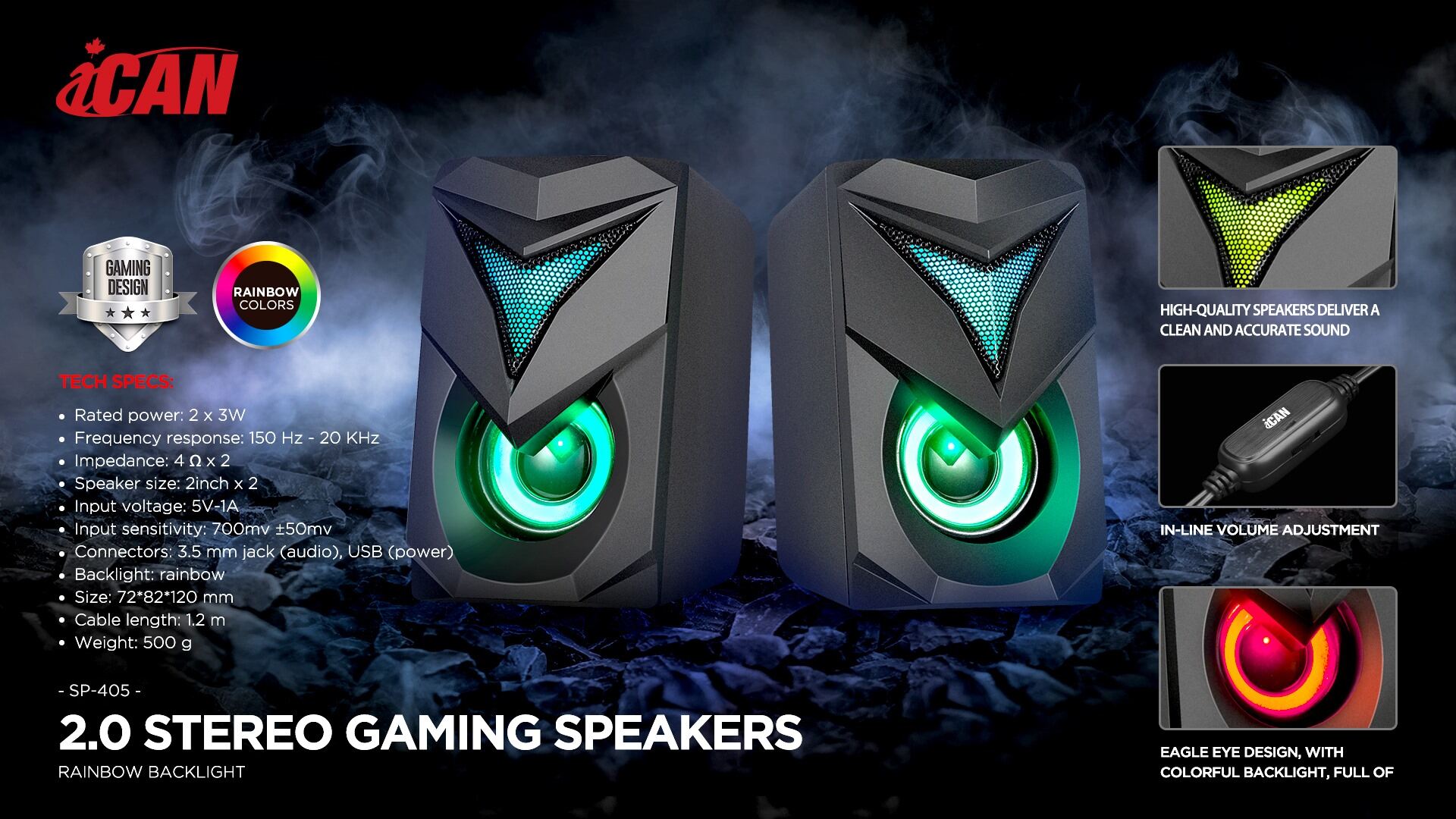 iCAN SP-405 PC 2.0 Speaker, Stereo Sound, RGB Light