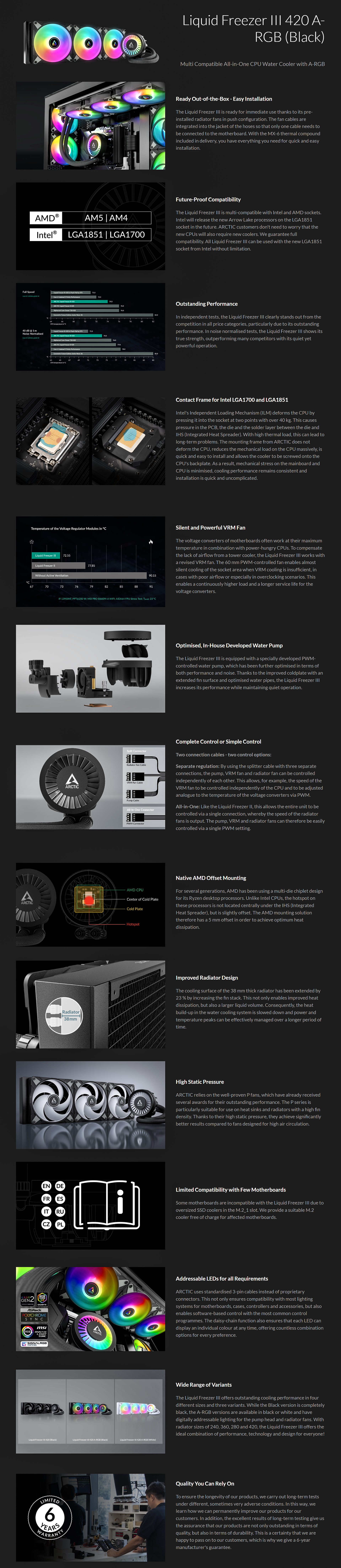 • Arctic Liquid Freezer III 420 A-RGB AIO CPU Water Cooler, Black