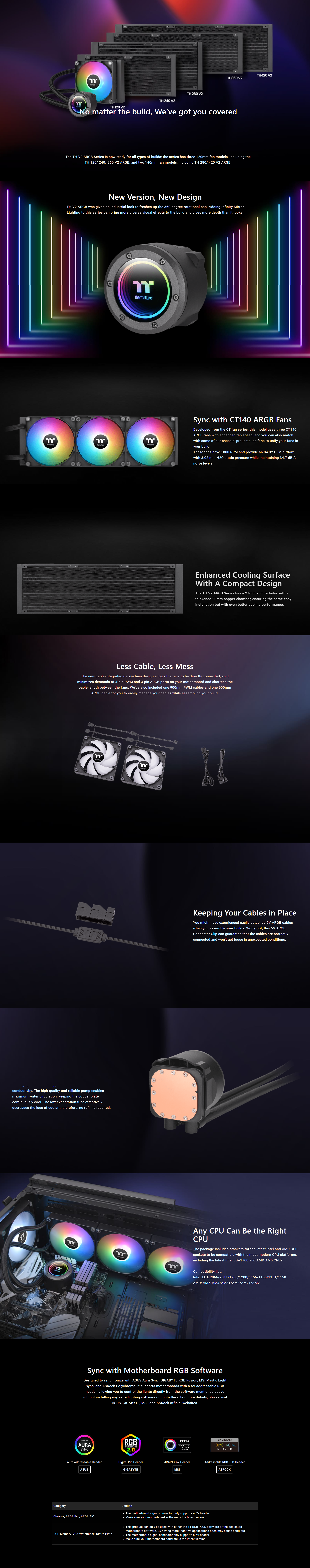 The TH V2 ARGB Series is now ready for all types of builds; the series has three 120mm fan models, including the TH 120/ 240/ 360 V2 ARGB, and two 140mm fan models, including TH 280/ 420 V2 ARGB.