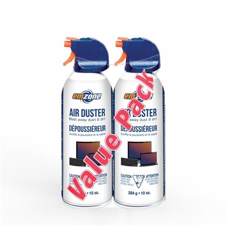 Keep your office equipment at home clean with the emzone® Air Duster Double Pack. This compressed gas duster blasts air and chemicals that help in cleaning your electronics, automobiles, and other office equipment. It is a moisture-free, non-VOC, non-ozone depleting product that leaves zero residue and is perfect to use in hard-to-reach areas.