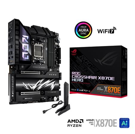 ASUS ROG CROSSHAIR X870E HERO AMD X870E AM5 ATX motherboard, Advanced AI PC ready, 18+2+2 power stages, DDR5, PCIe® 5.0, 5x M.2, Wi-Fi 7, USB4®, AI Overclocking, Core Flex, PCIe Slot Q-Release Slim