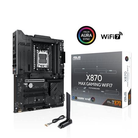 ASUS X870 MAX GAMING WIFI7 AMD AM5 ATX Motherboard, 12+2+1 80A DrMOS, DDR5, PCIe 5.0 x16 Q-Release, 3x M.2, Wi-Fi 7 Q-Antenna, 2.5Gb LAN, USB4® Type-C®, USB-C® 20Gbps, BIOS FlashBack™, Aura Sync