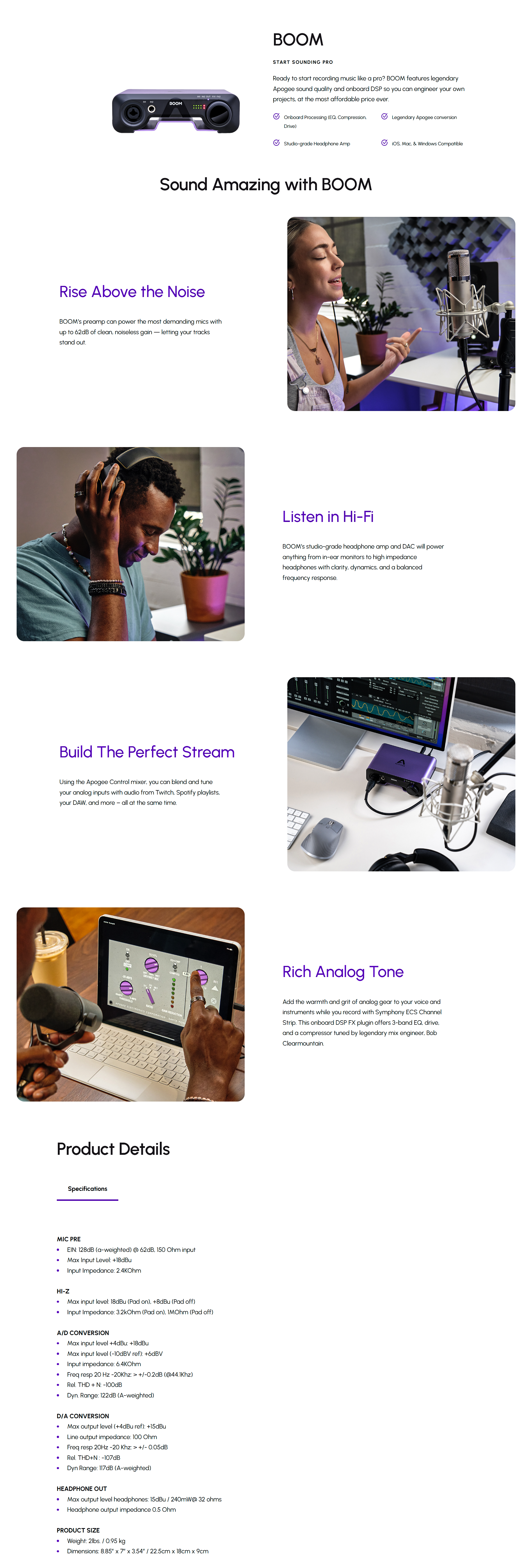 • APOGEE Boom 2×2 USB-C Audio Interface with DSP