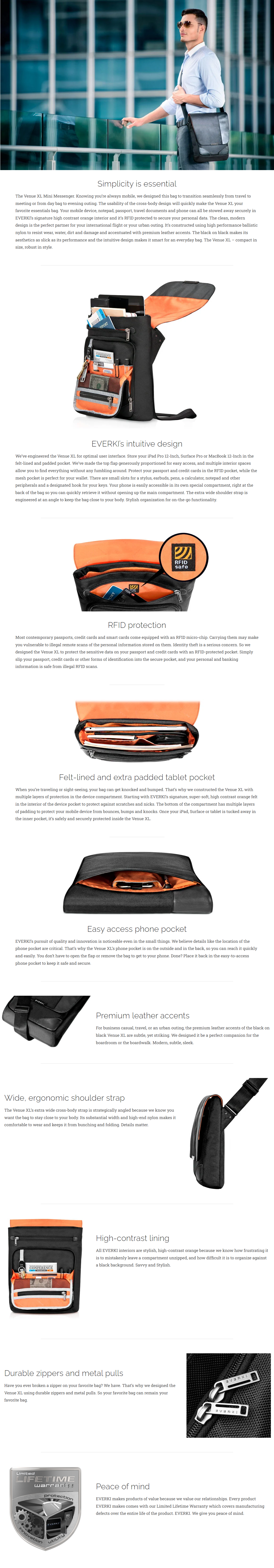• EVERKI Venue XL Premium RFID Bag up to 12 inch, Black