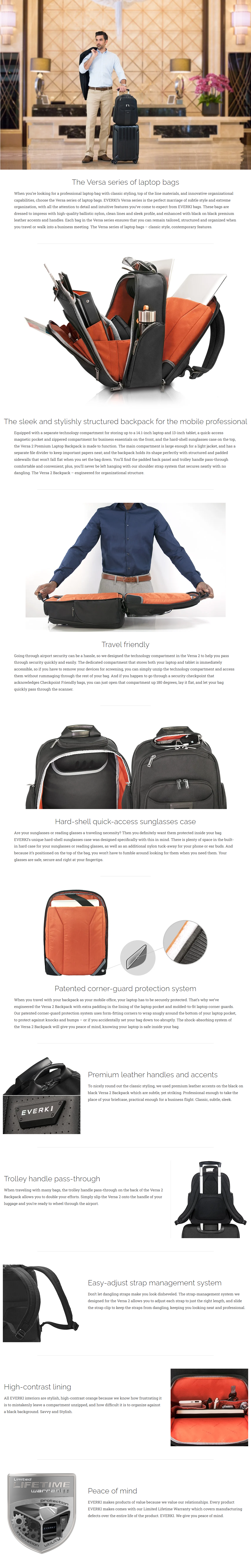 • EVERKI Versa 2 Premium Laptop Backpack, Black
