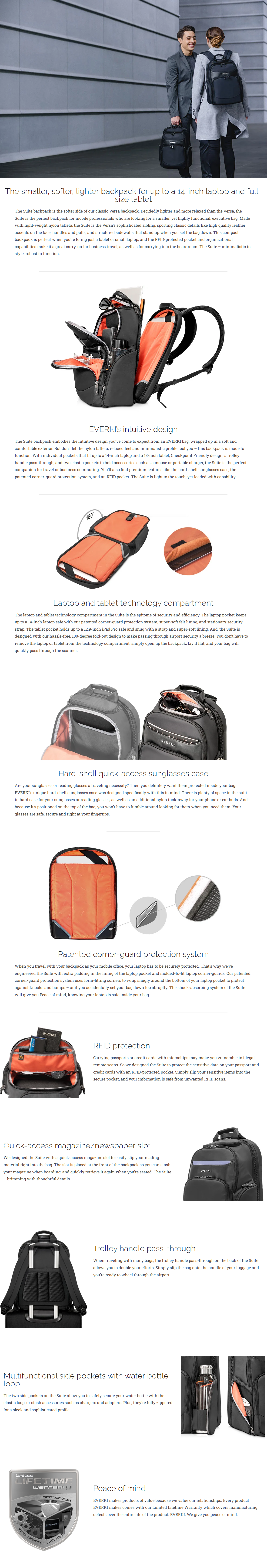 • EVERKI Suite Premium Checkpoint Laptop Backpack up to 14 inch, Black