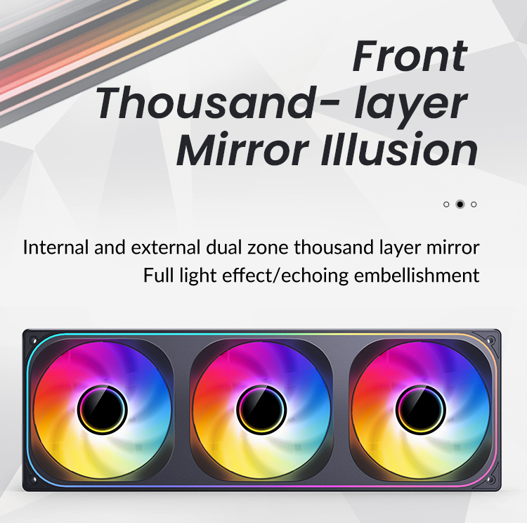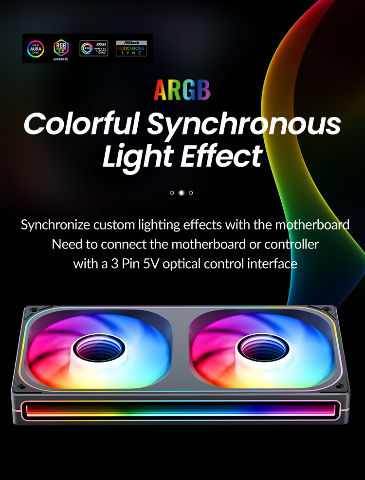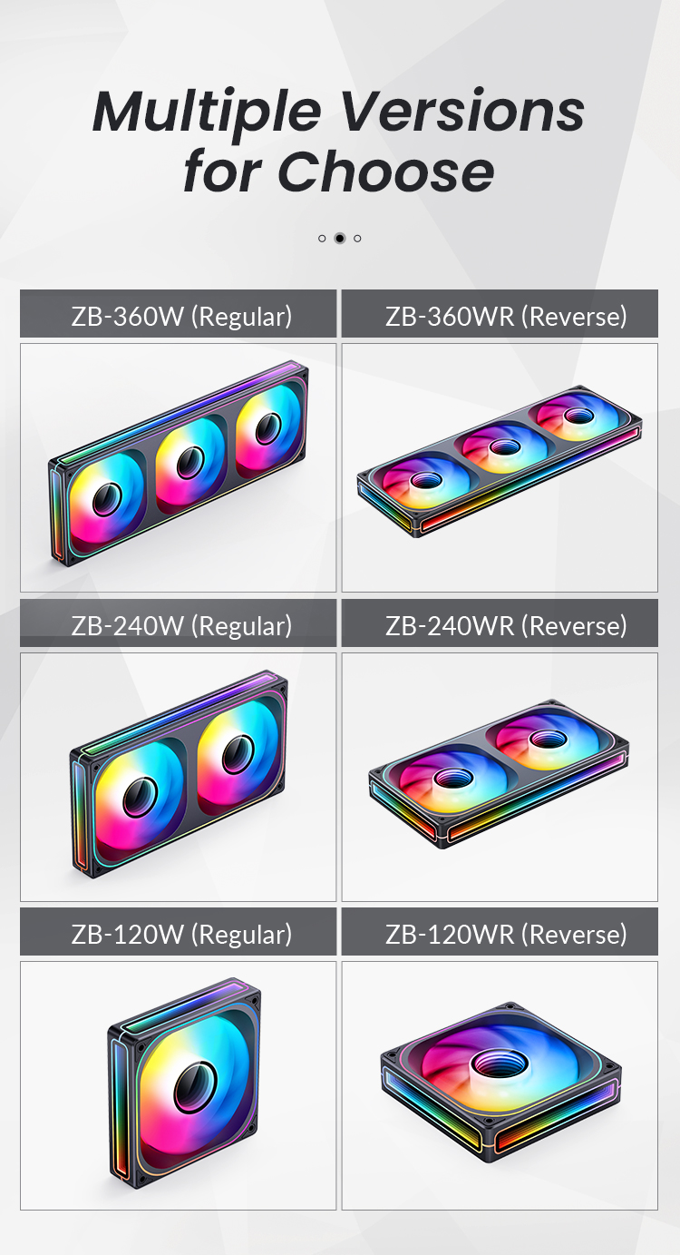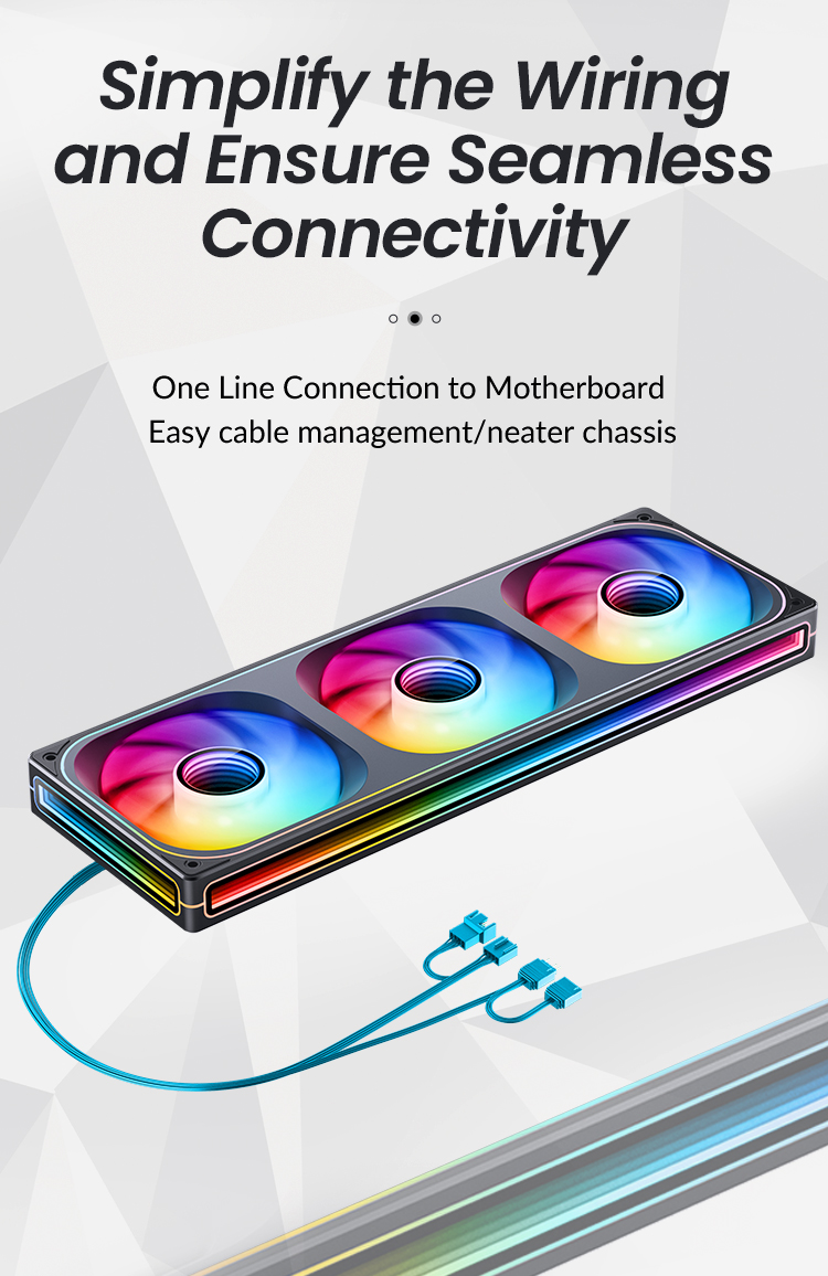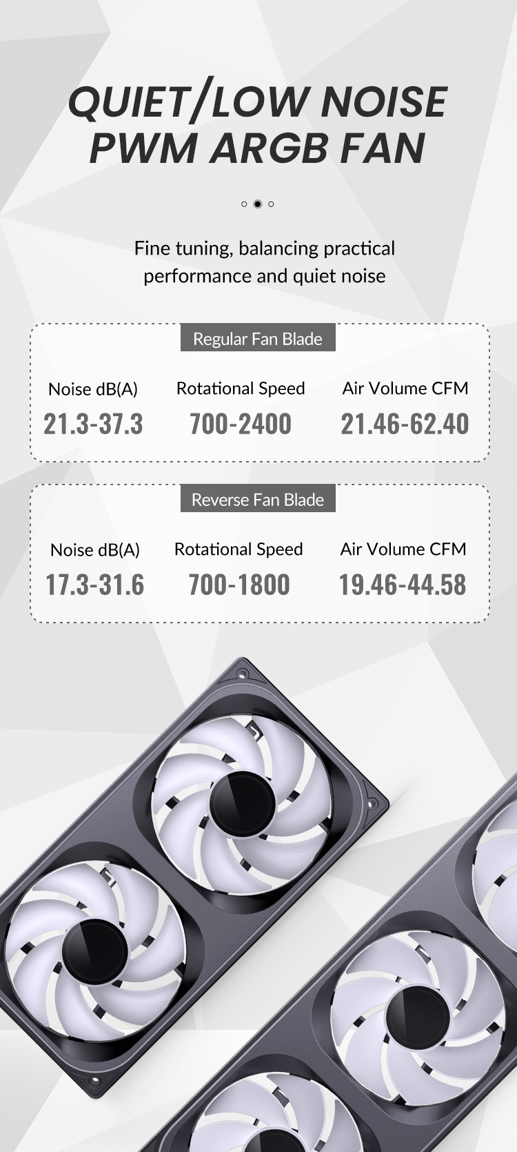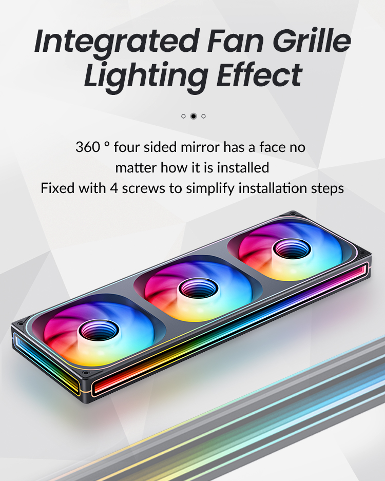JONSBO ZB-360B PC Case Fan, Silent Computer Fan with Axis & 4-Sides Infinity Mirror, All-IN-One, Single Frame Unit with 3x120mm ARGB Fans, 4 Pin PWM,3Pin ARGB, Fan 2400RPM, Black(Open Box)