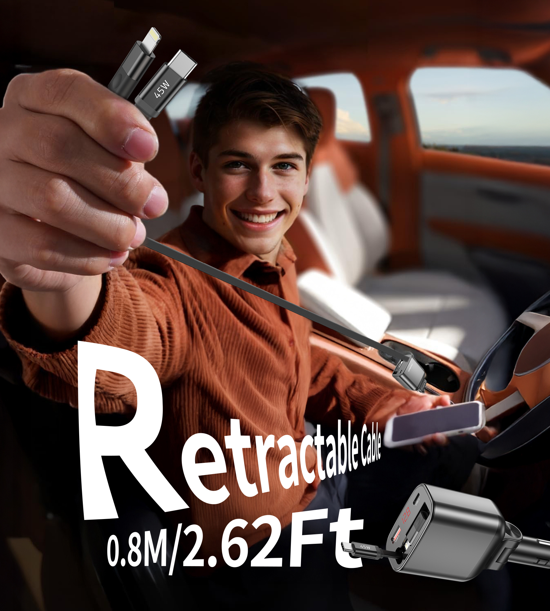 • Choetech 105W 4-in-1 Digital Car Charger with 2.6ft 45W Type-C Cable
