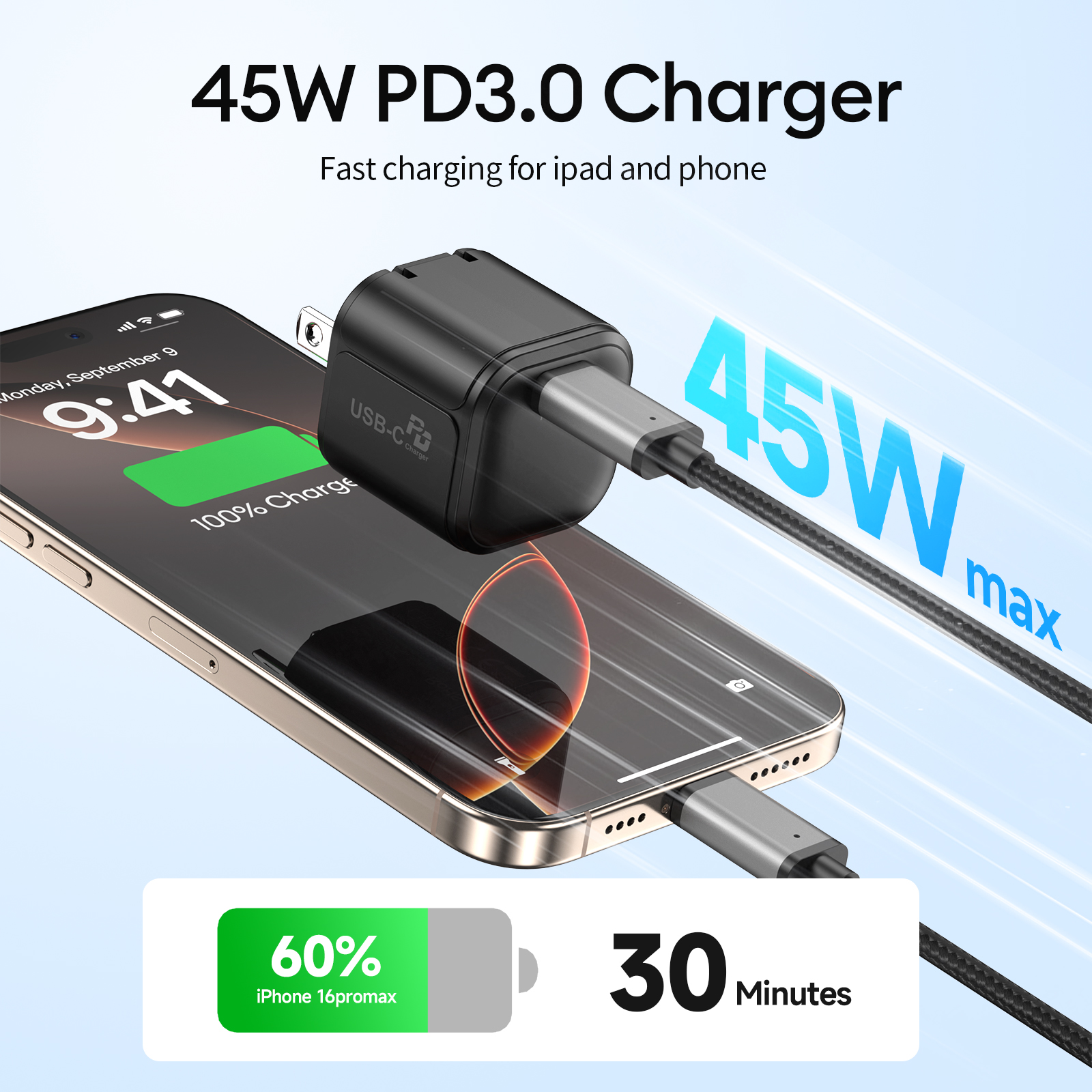 • PD-534 45W USB-C PD GaN Super Fast Foldable Wall Charger