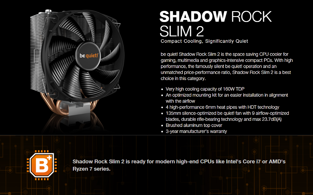 • be quiet! Shadow Rock Slim 2 CPU Air Cooling