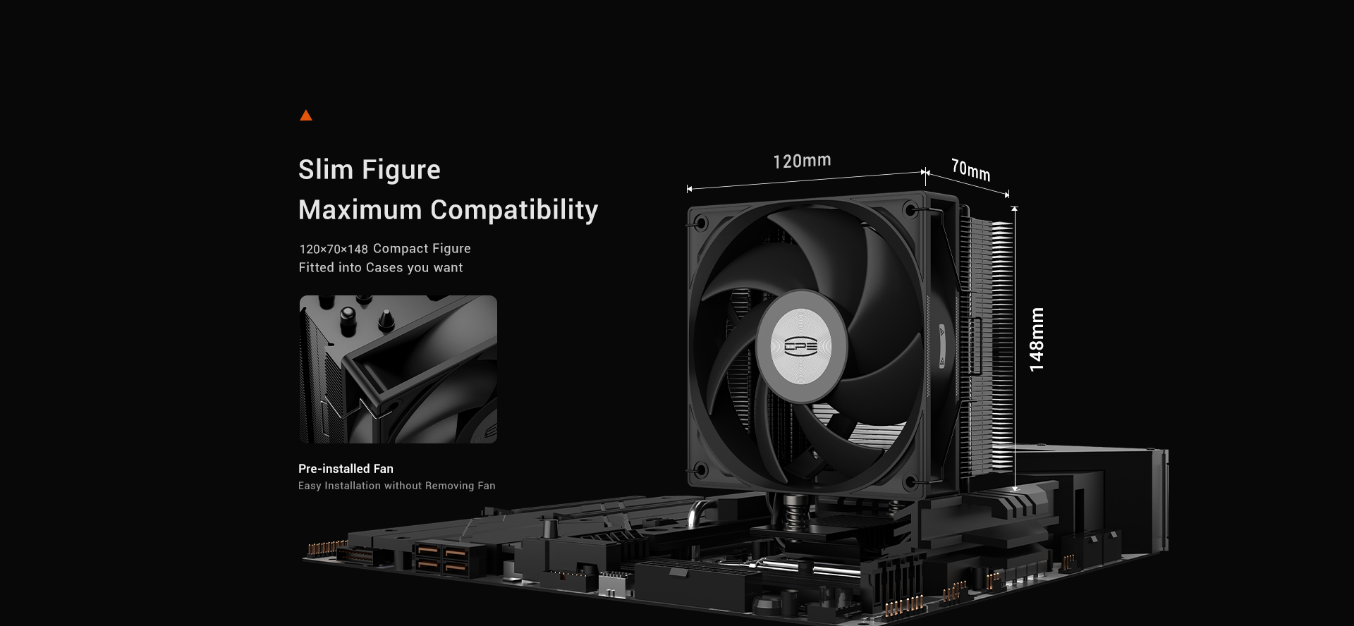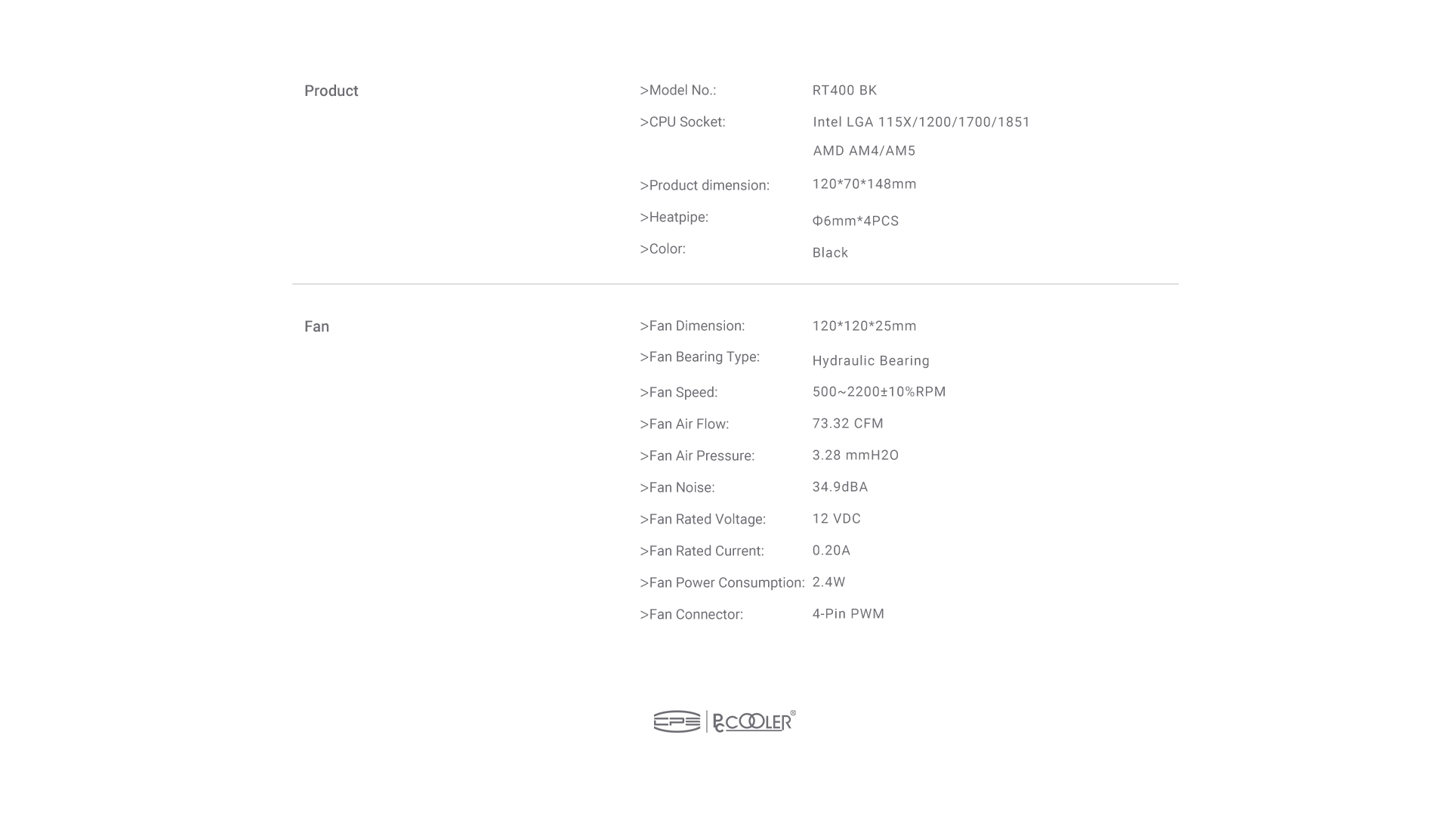 PCCOOLER CPS RT400-BK CPU Cooler,Single TowerTotal,235W TDP, Quiet Cooling,Narrow Fin Offset Design, Intuitive Installation