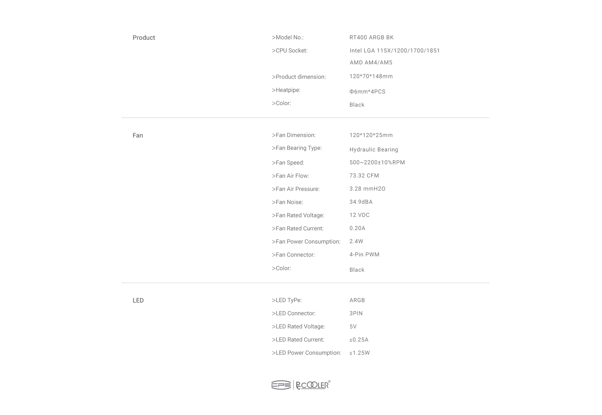 • PCCOOLER CPS  RT400 ARGB CPU Cooler,235W TDP ,Tower Air Cooler