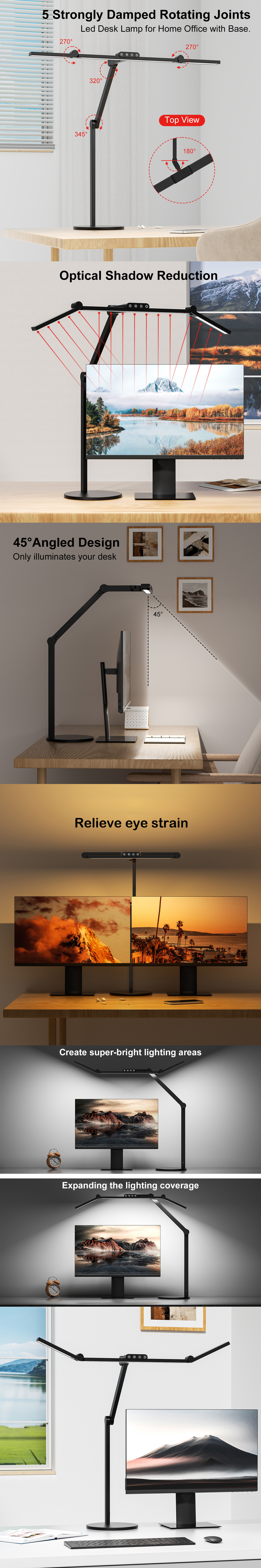 iCAN Stand-Up LED Desk Lamp, Dimmable & 3000K-6500K Color Temperature Adjustment.