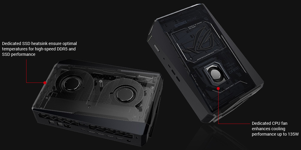 Inheriting its predecessor’s impressive cooling capabilities, the ROG NUC (2025) is intricately engineered with three fans and dual vapor chamber, operating with remarkable silence even under stress
