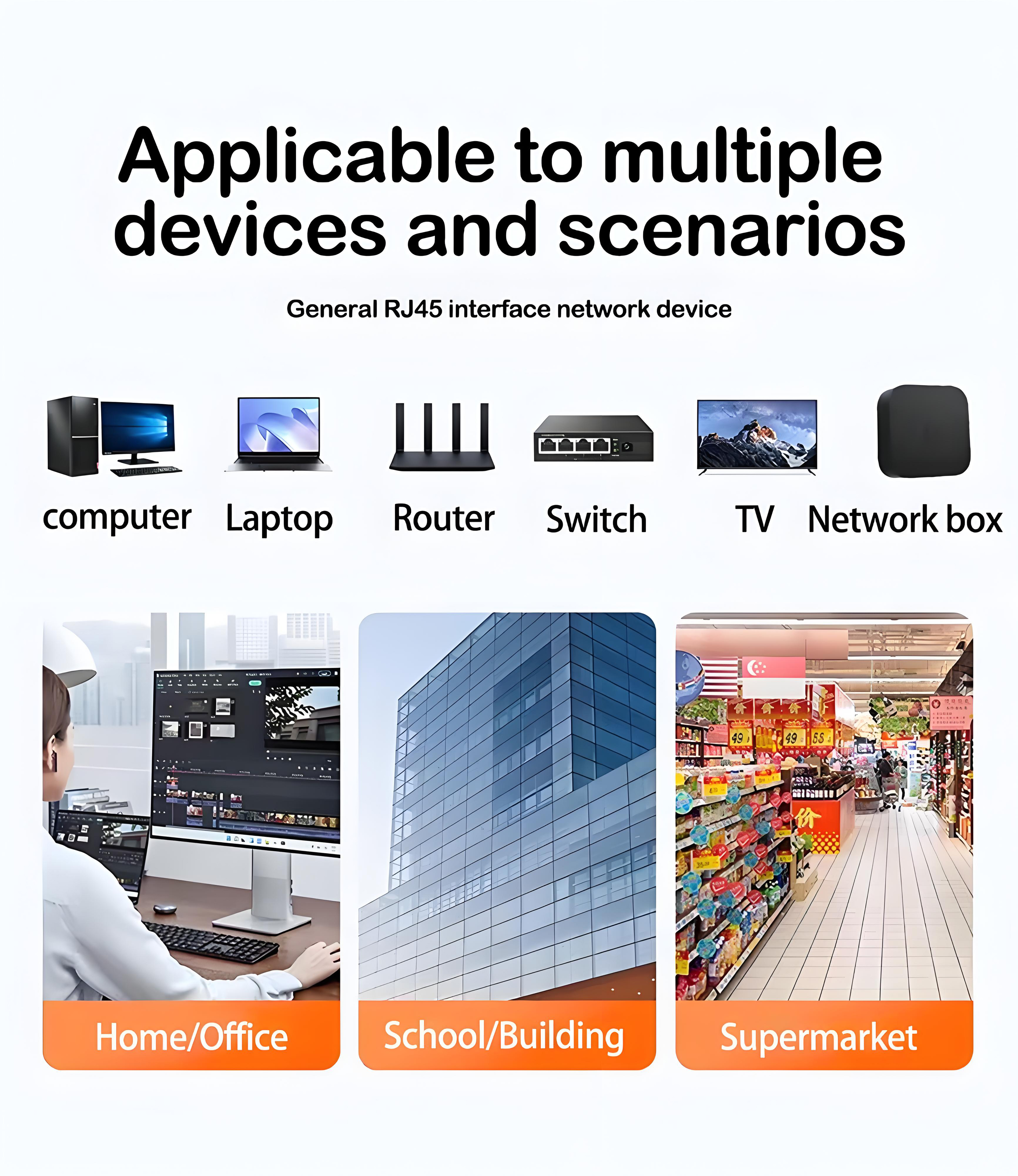 • UNIVERSAL COMPATIBILITY: Cat7 flat internet cable is applicable to communication device with RJ45 socket,such as home server,Xbox,PS4,router,data room,HDTV ,RoKu,and switch.
