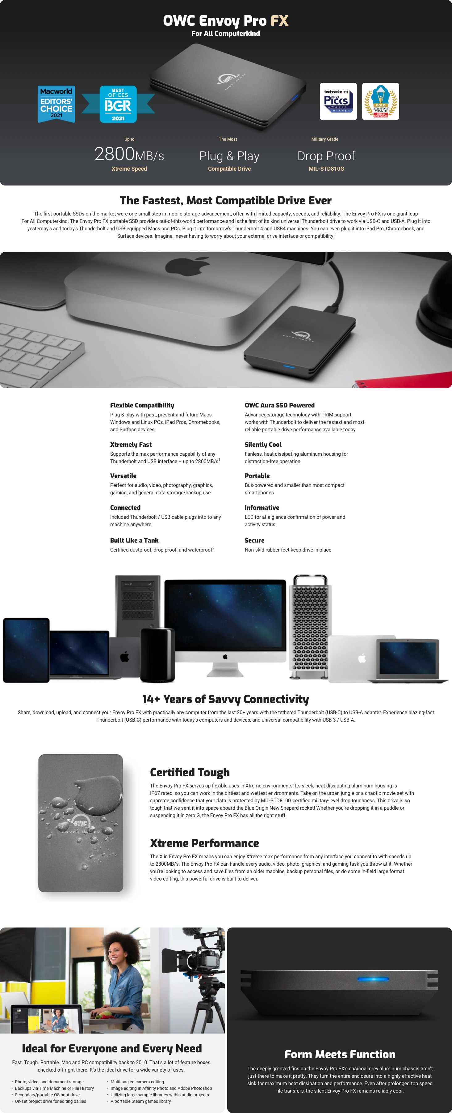 Mac and PC compatibility back to 2010. Fast. Tough. Portable. That's a lot of features boxes checked off. The Envoy Pro FX then goes to the next level by being the ideal drive for a wide variety of uses:
