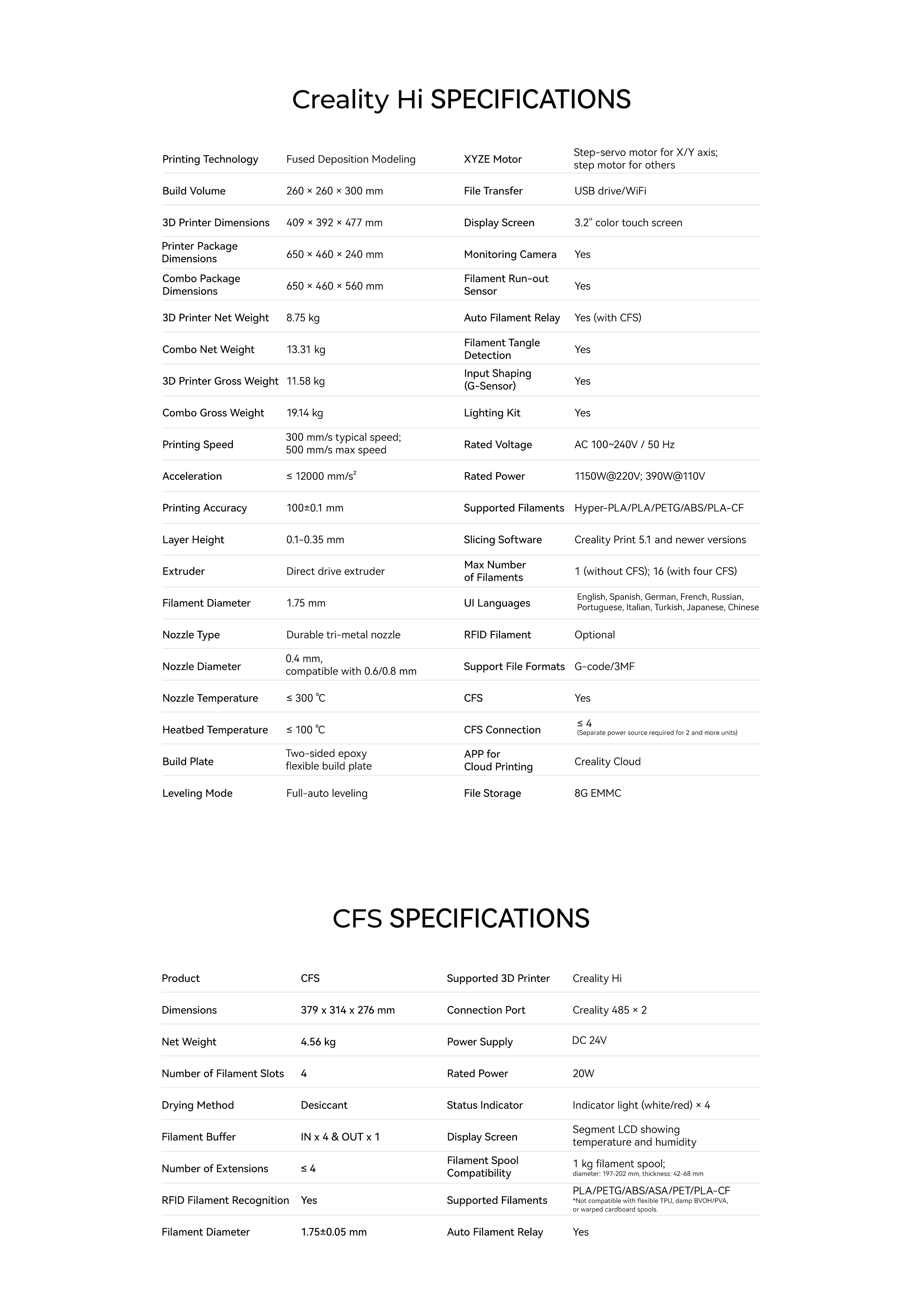 • Creality Hi Combo Speedy 3D Printer, 260x260x300mm Print Size