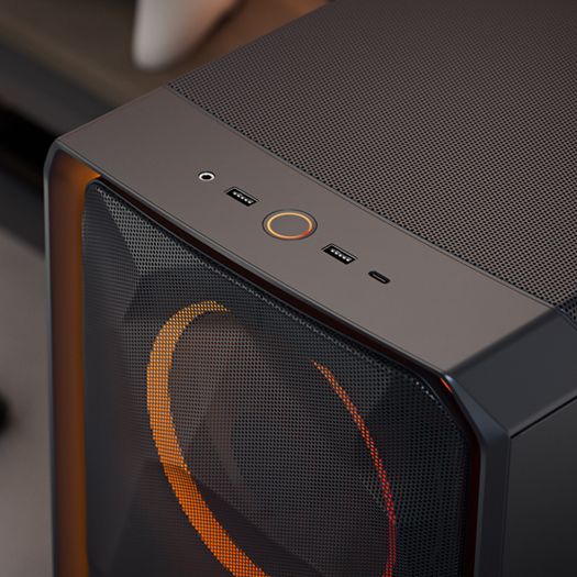 Connect your devices easily with a top I/O featuring a 20 Gbps USB Type-C port, two USB-A ports and a combined audio jack.
