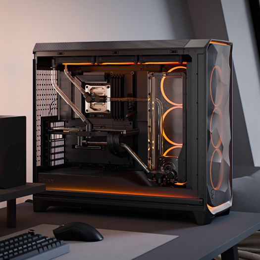 Create a build with advanced cooling, with space for up to a 420 mm top radiator and up to 360 mm front and side radiators.