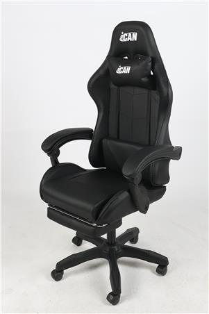 iCAN C730-BK Gaming Chair, Footrest and Lumbar Support, Padded Linkage Armrests