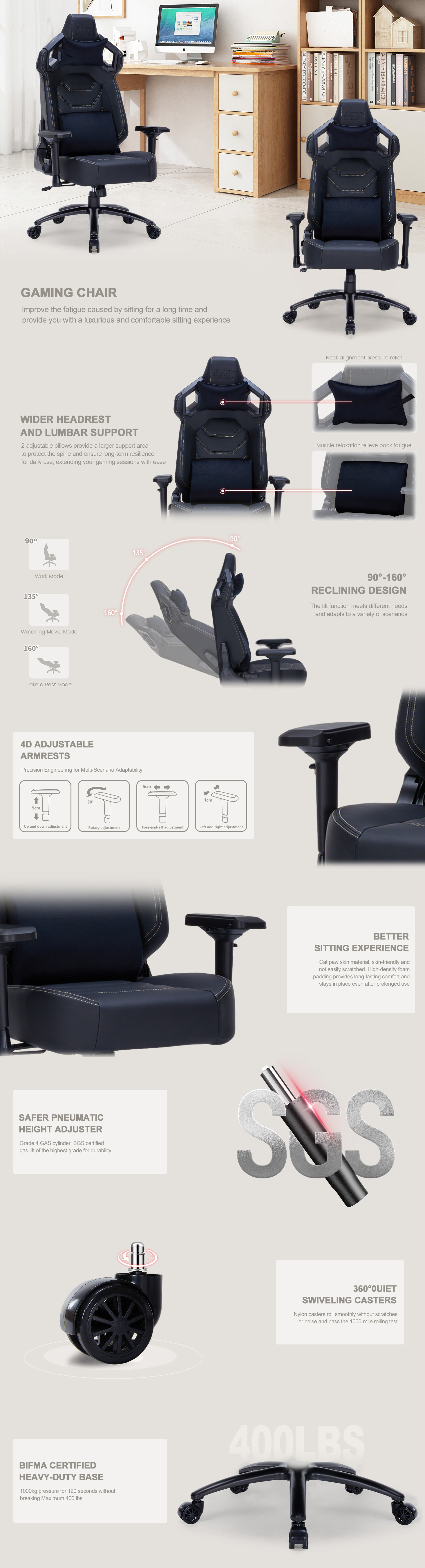 iCAN 9917 Gaming Chair,PU Leather,Headrest and Lumbar Support, Height Adjustable with 360°Swivel Seat,New Foam For Seat,4D Armrest,Class 4 Gaslift,Black