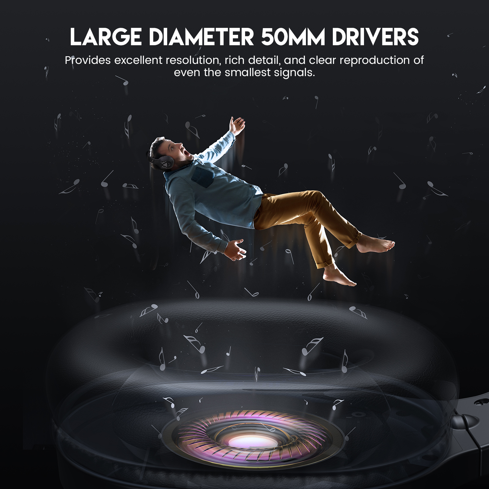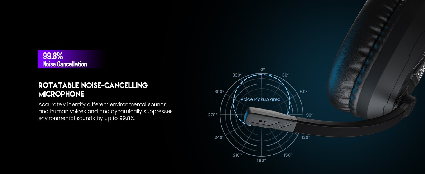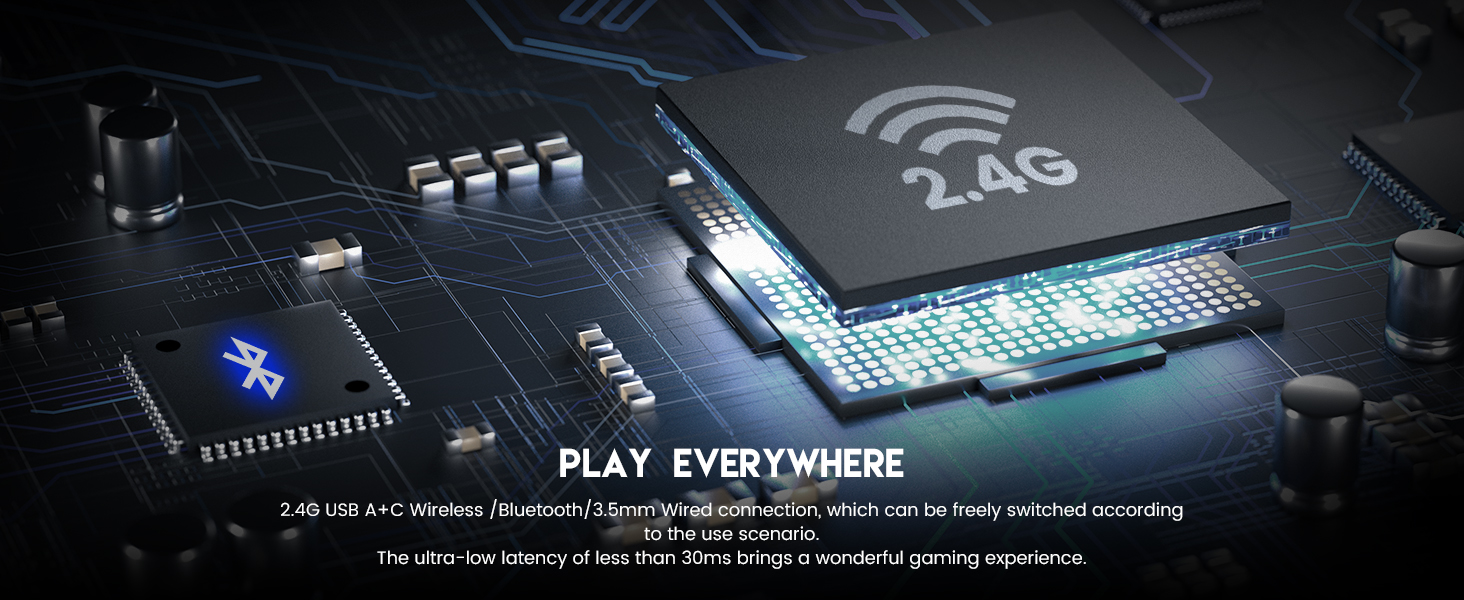 · Stable Connection & 3D Stereo Sound: E5BT wireless gaming headset combines high performance 2.4GHz lossless wireless technology for the accessible connection up to 49 feet in an unobstructed space. Lower latency (≤20ms) and featuring 50mm driver with 33% extra sound effect ensure that the wireless gaming headphones provide higher quality stereo sound, which makes you sense voice of directions, footsteps and every details clearly in games for a better immersive gaming experien