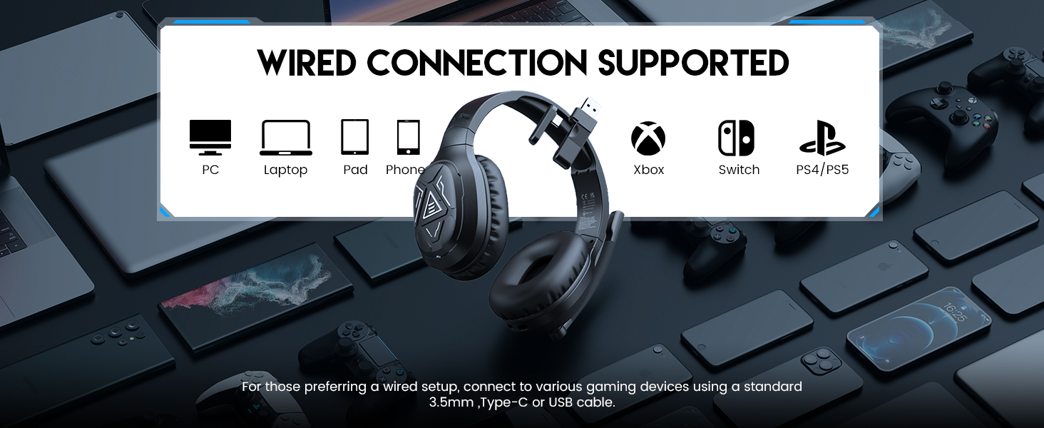 · 3-in-1 Connection Ways & Multi-platform Compatibility: E5BT wireless pc headset supports low latency, lossless 2.4GHz USB A+C dongle and the latest Bluetooth stable connection, while supporting 3.5mm wired connection mode. Unique 3 in 1 connection design make this wireless headset widely compatible with PS5, PS4, PC, Mac, phone, pad, switch(Invalid Microphone). Please Note that the BT Function not support PS5 or PS4 and Xbox series only compatible with 3.5mm wired mode.