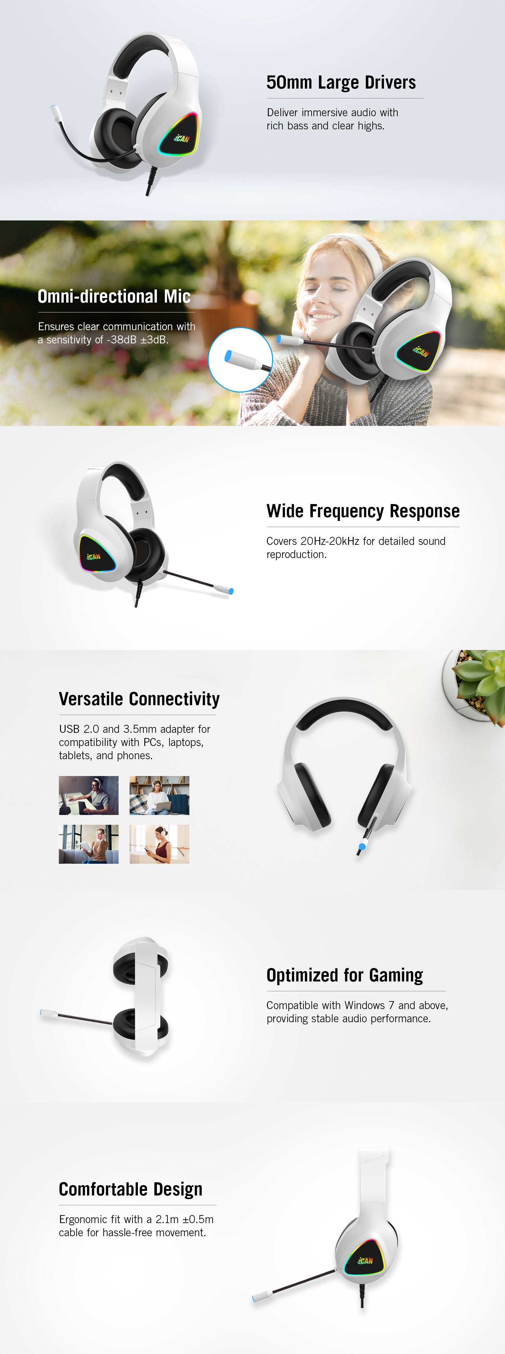 • iCAN ST-GH709-WH Wired RGB Gaming Headset