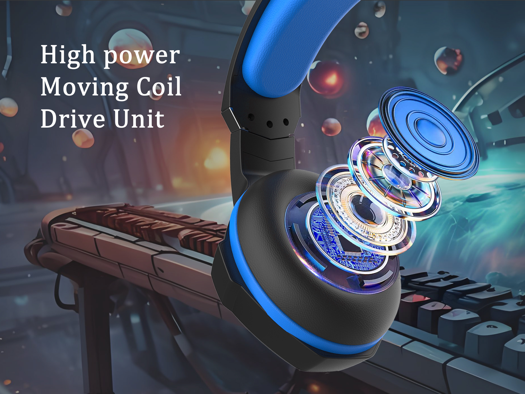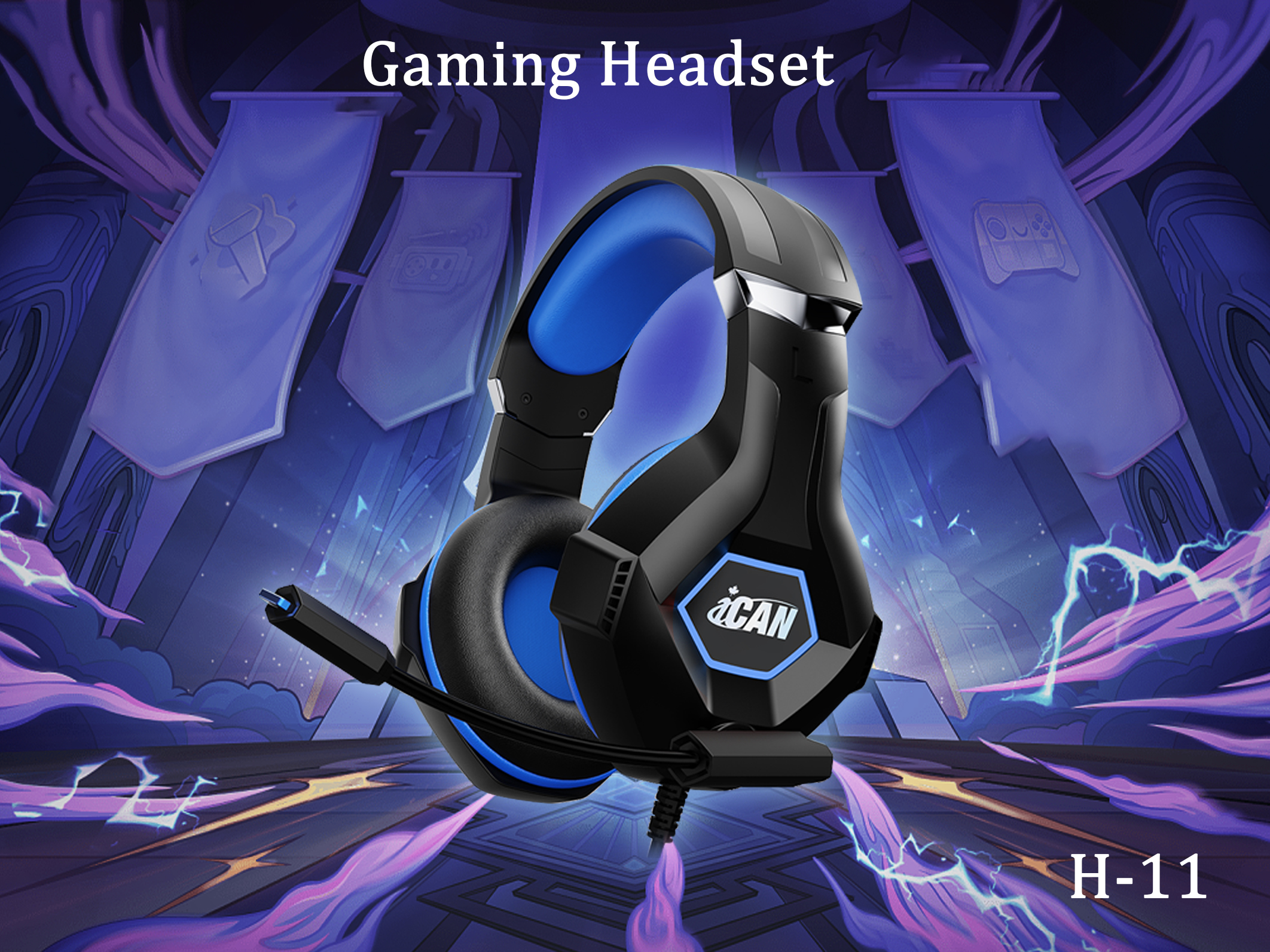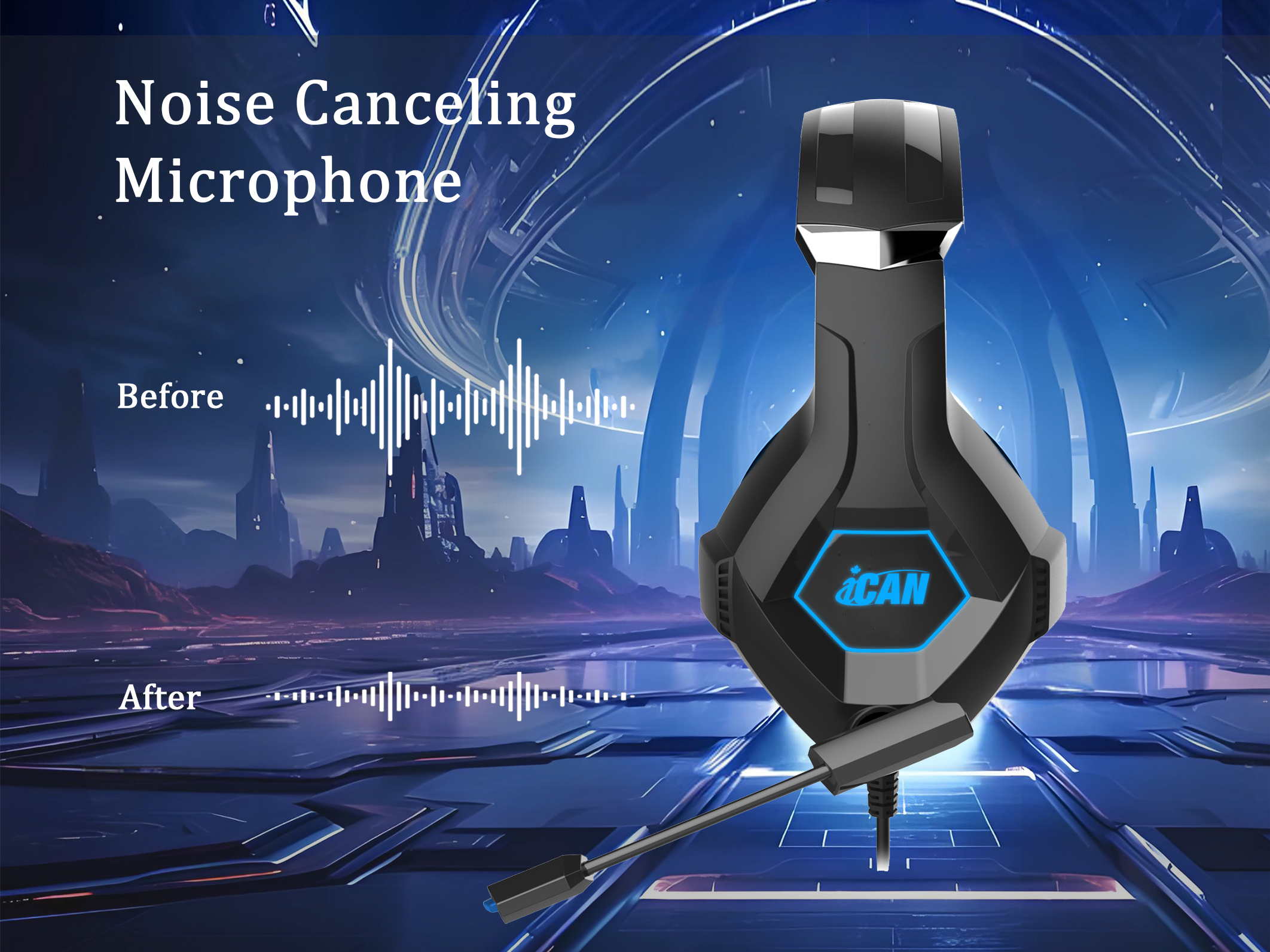 iCAN H11-B Gaming Headset for PC Ps4 Ps5 Stereo Gaming Headphones with Flexible Noise Cancelling Microphone, Soft Memory Earmuffs, LED Light for Xbox Series X/S, Switch, Laptop, Mac, Phone