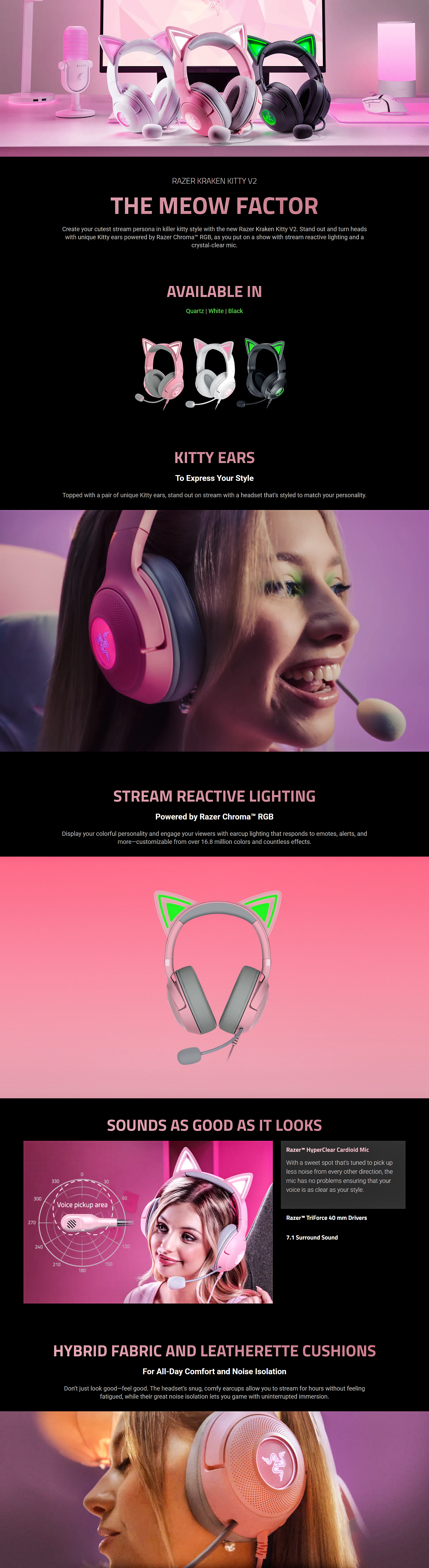• RAZER Kraken Kitty V2 USB Wired RGB Headset - Quartz Pink