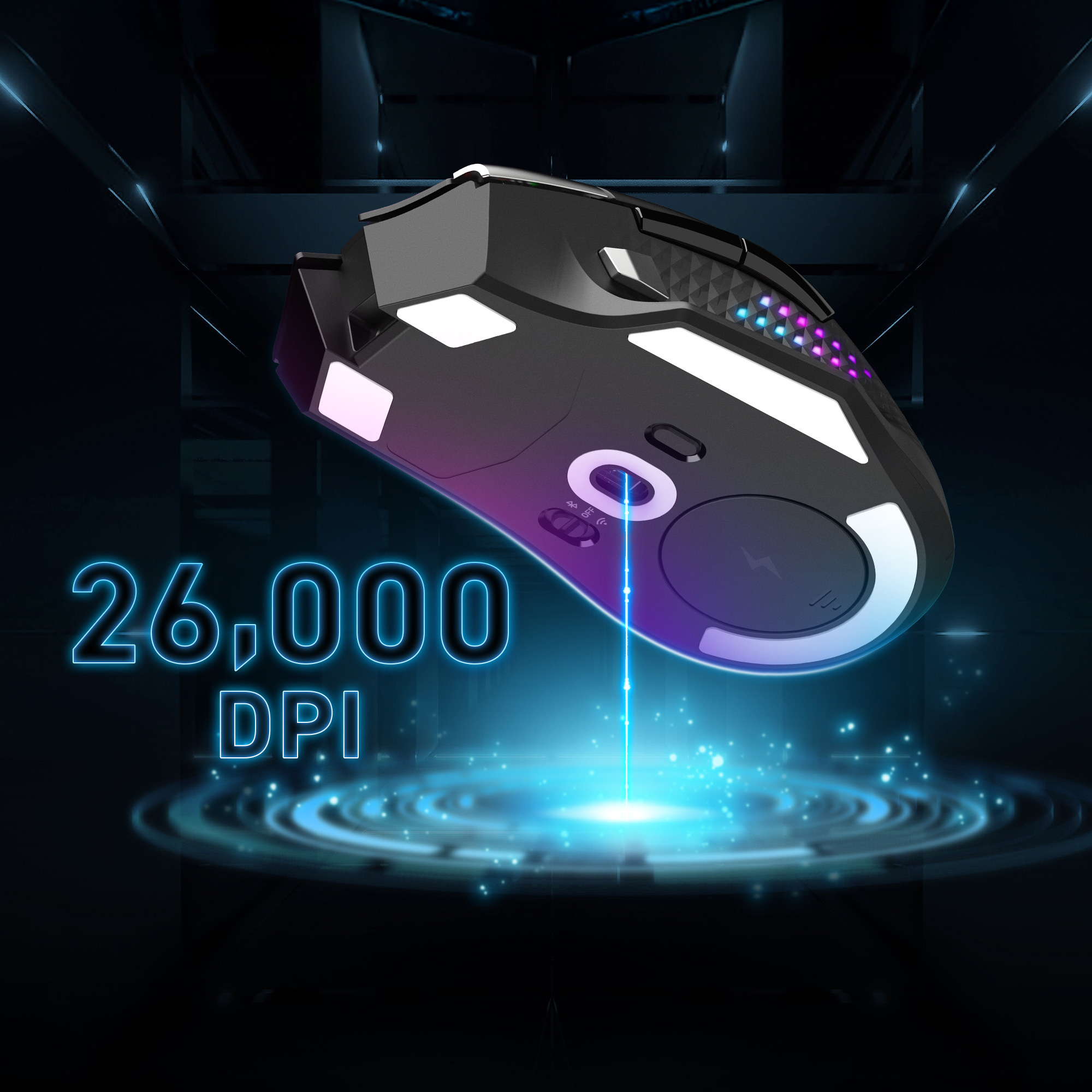 The PixArt PAW-3395 optical sensor is designed to dominate the game delivering up to 26,000 DPI, 650 IPS, and 50G acceleration.