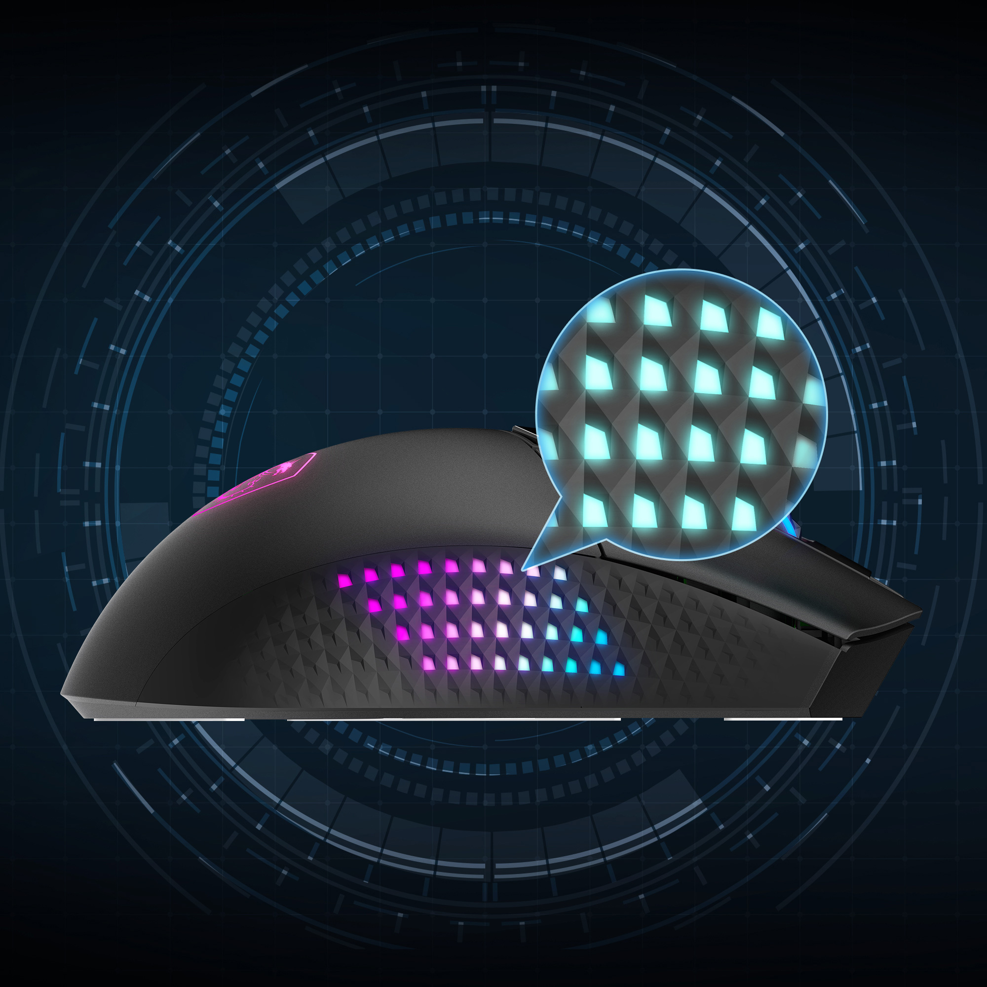 Enjoy a secure and comfortable grip with MSI's diamond-patterned anti-slip surface, designed for stability and control during intense gaming sessions.