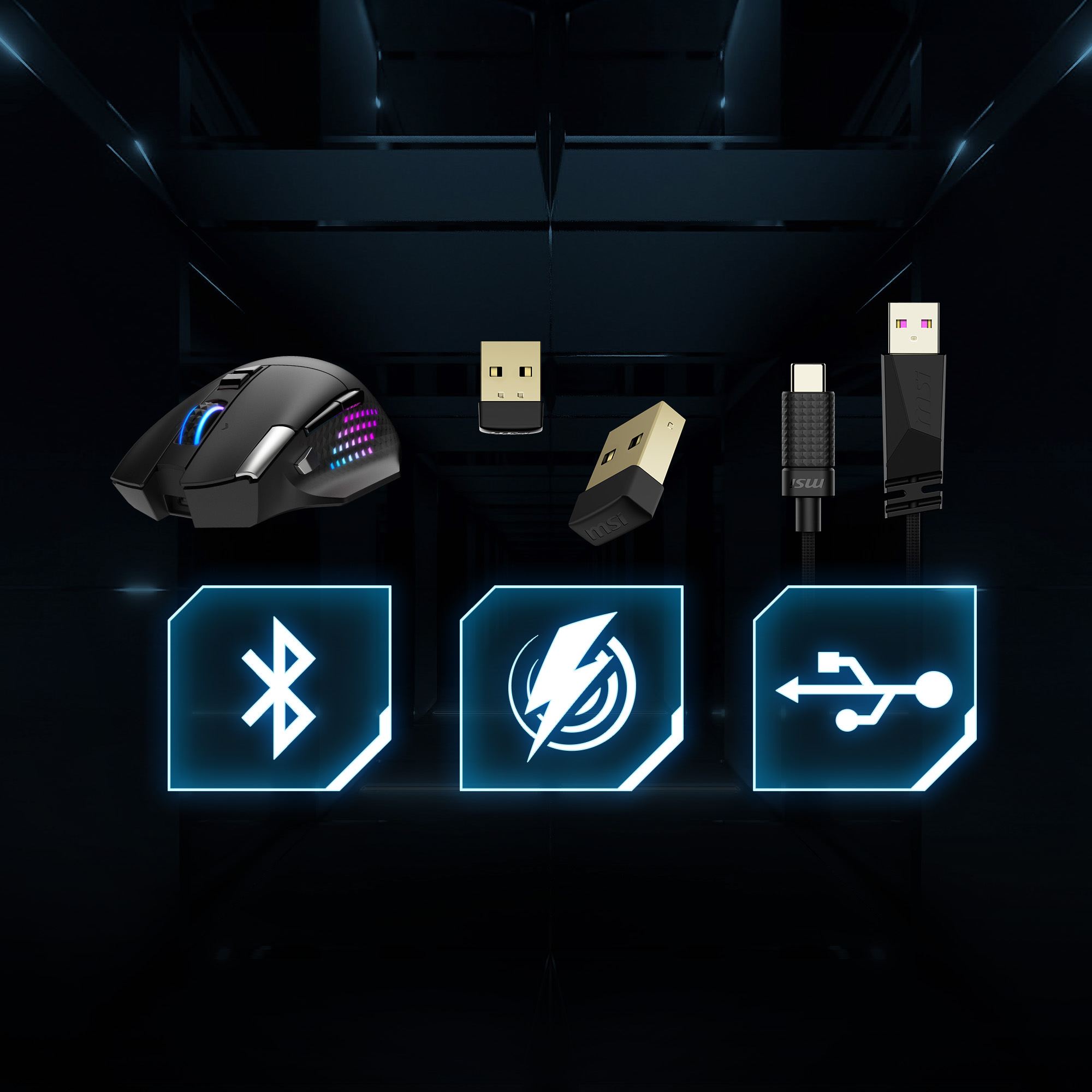 Seamlessly switch between MSI SWIFTSPEED 2.4GHz wireless, Bluetooth 5.3, and USB 2.0 connectivity to suit your setup and preferences.