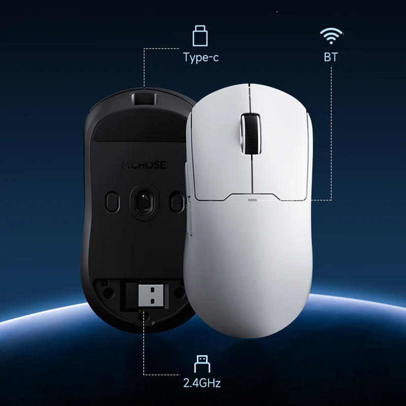 The MCHOSE A5 series wireless mouse, available in A5Pro, A5Pro Max, and A5Ultra models, is engineered for superior performance in both professional and gaming environments. Merging cutting-edge technology with an ergonomic design, it provides unparalleled comfort, precision, and versatility.