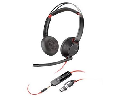 HP Poly Blackwire 5220 Stereo USB-C Headset +3.5mm Plug +USB-C/A Adapter