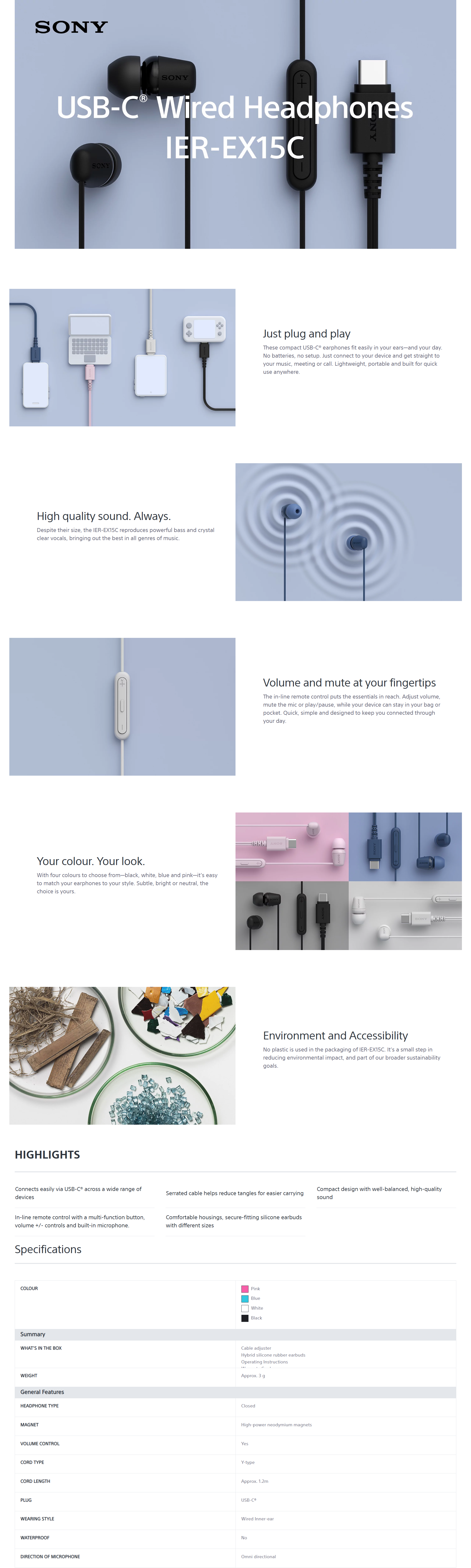 • SONY IER-EX15C USB-C Wired In-ear Headphones, Black