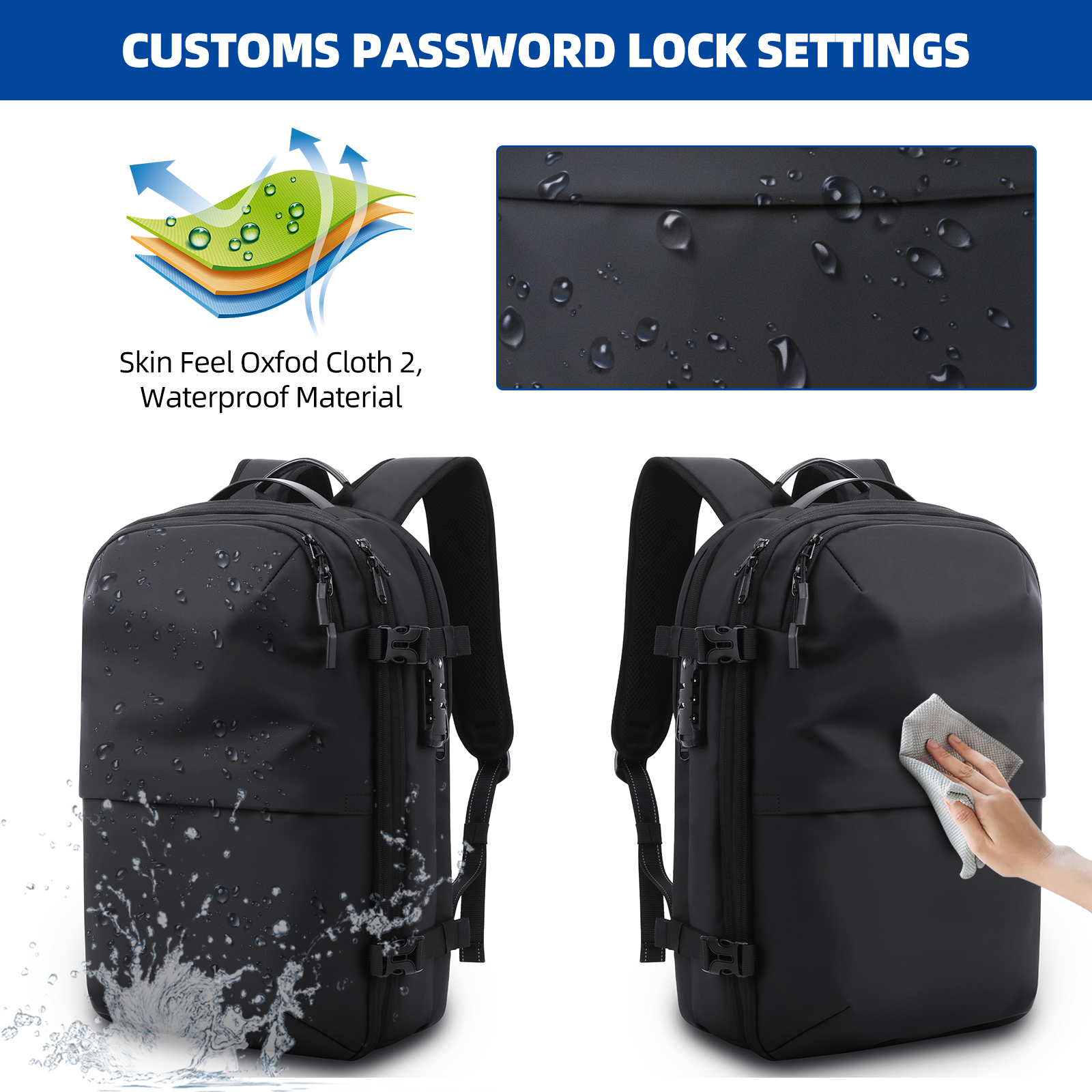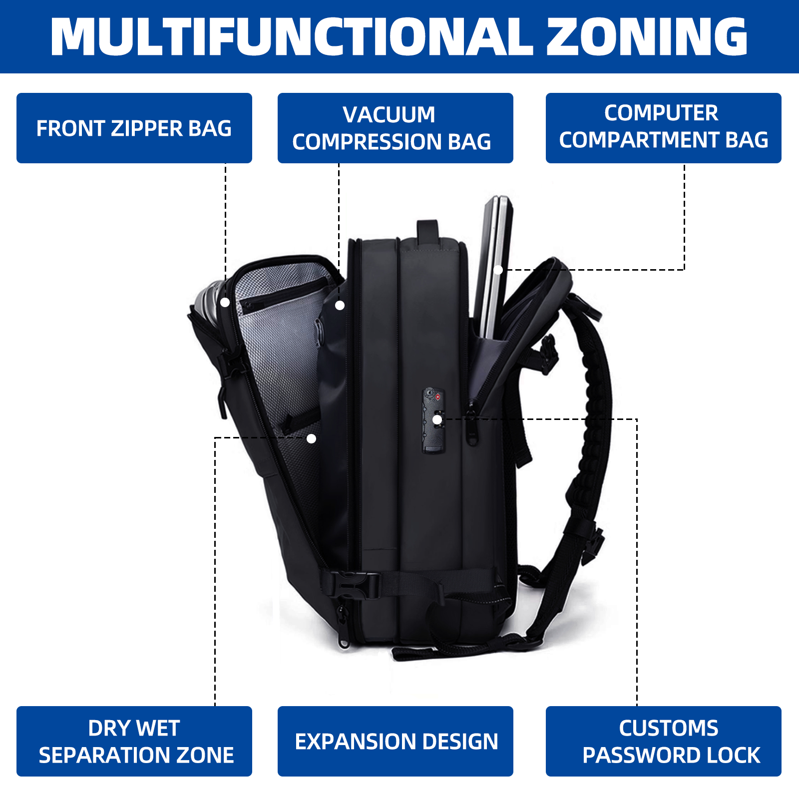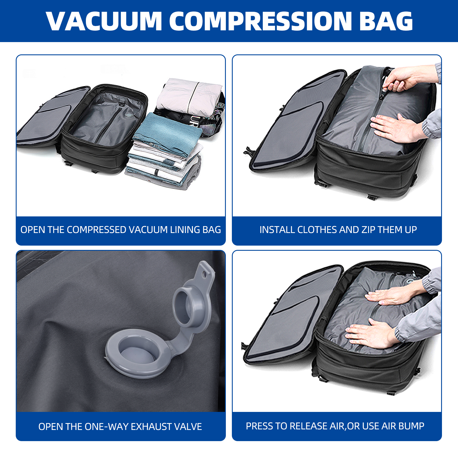 KINGSLONG 17.3'' Waterproof Vacuum Backpack, 60L Expandable with Pump and TSA Customs Lock for Men and Women, Black (KLB240401)