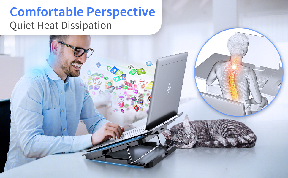 ICAN N106 Small Size Laptop Cooling Pad with 2 Cooling Fans, Laptop Fan Cooling Pad for Laptop Below 15.6 Lnch,Stand with 4 Height Adjustable, Two USB Port,