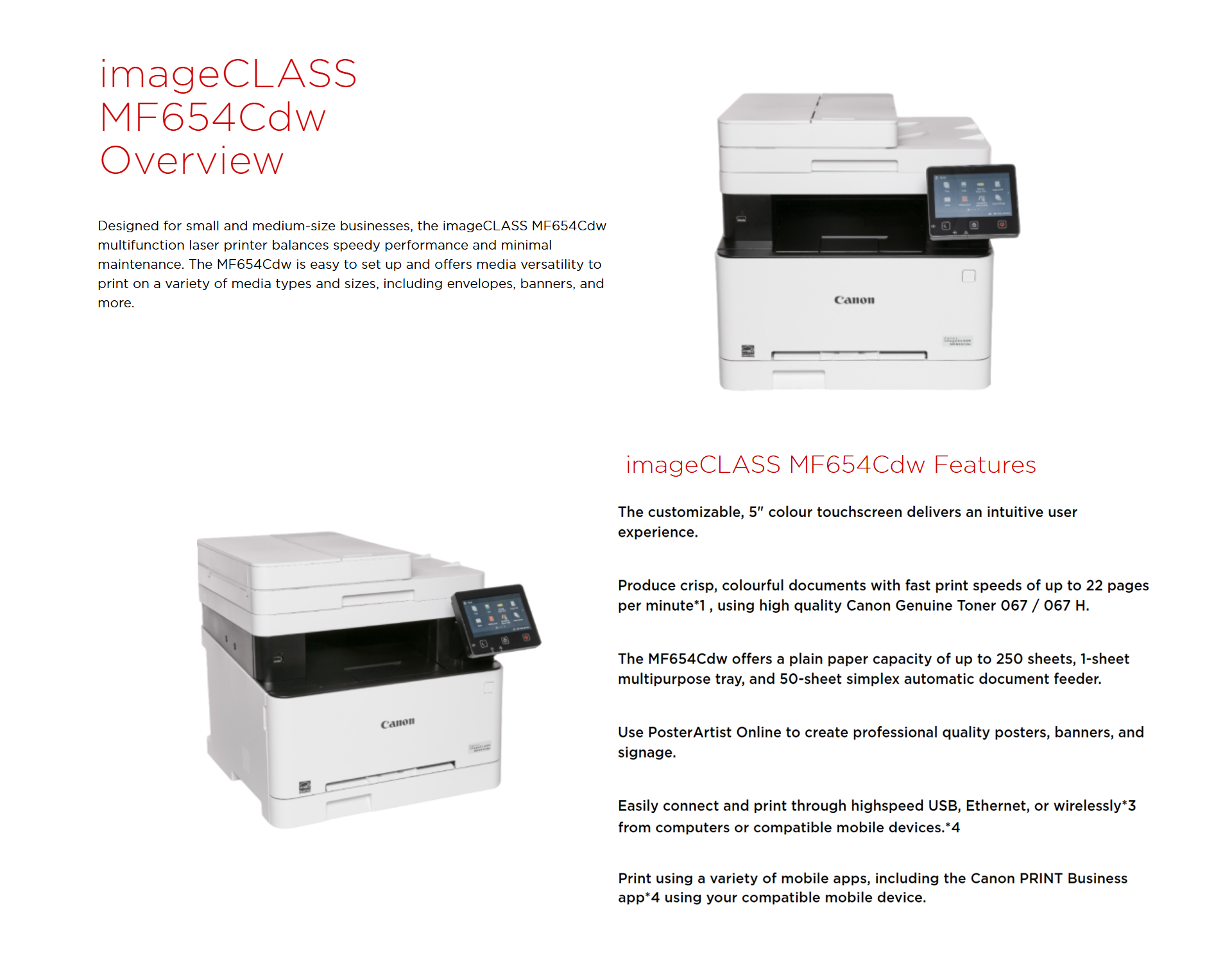 • CANON imageCLASS MF654CDW Wireless 3-in-1 Color Laser Printer