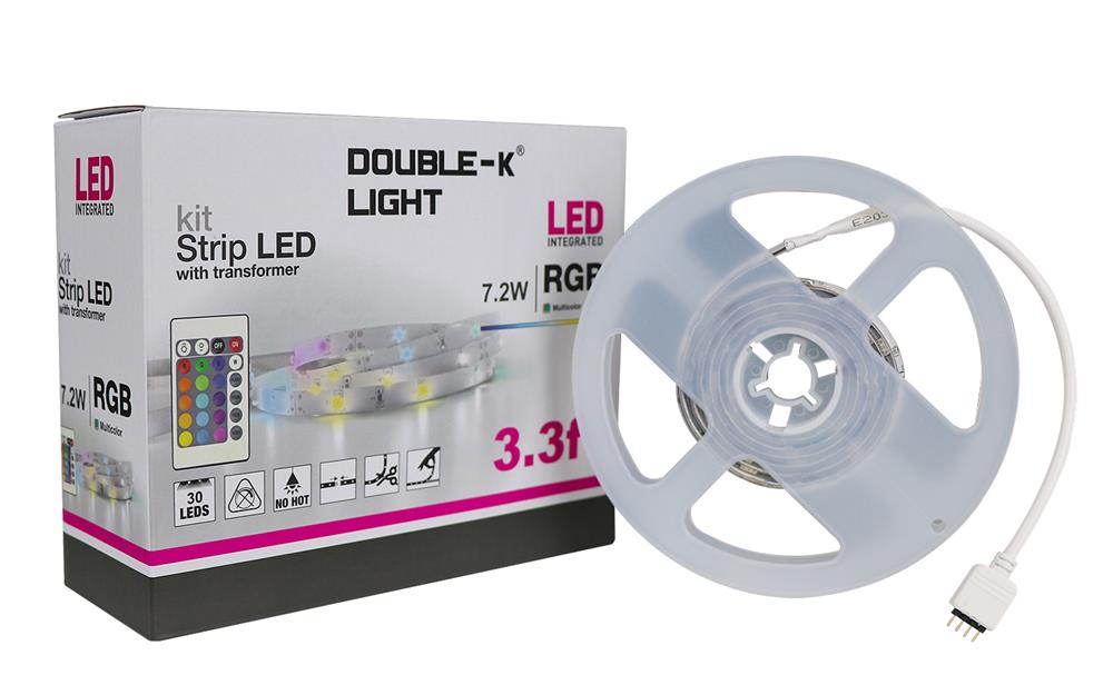 DOUBLE-K CUL&UL 12V IP54 Silicone RGB LED Strip Light Kit, 90 Units SMD 5050 RGB, 9.8ft Ribbon Light Kit with Remote Controller and Power Adapter Included, for Home, Kitchen, Bedroom, Under Cabinet, and More.