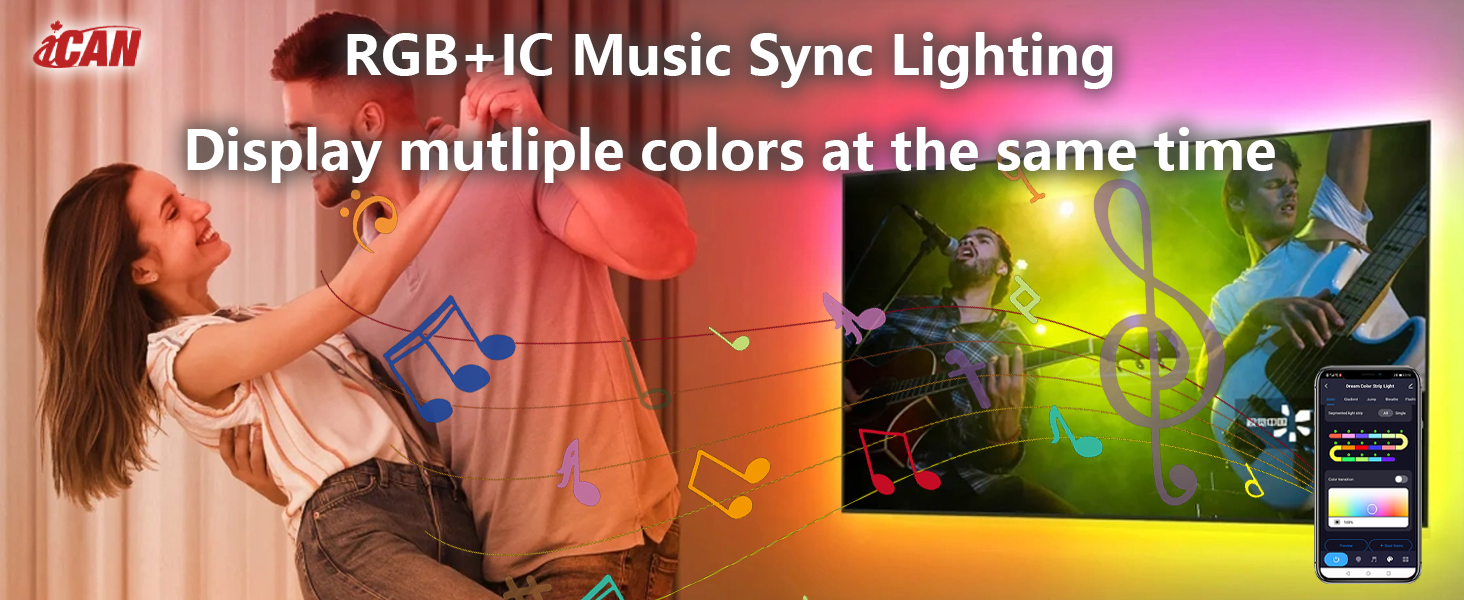 • iCAN Smart LED RGB+IC 16.4ft Strip Lights, Music Sync, APP Control.