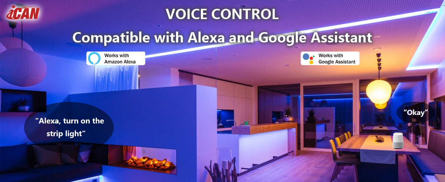 iCAN Smart LED RGB+IC 16.4ft Strip Lights, Music Sync, APP Control, Compatible with Alexa and Google Assistant, Ideal for Gaming and Home Decor.