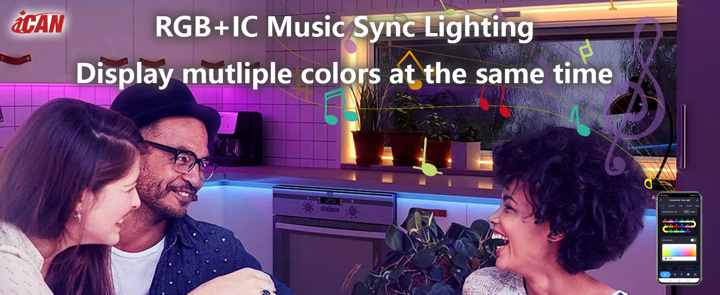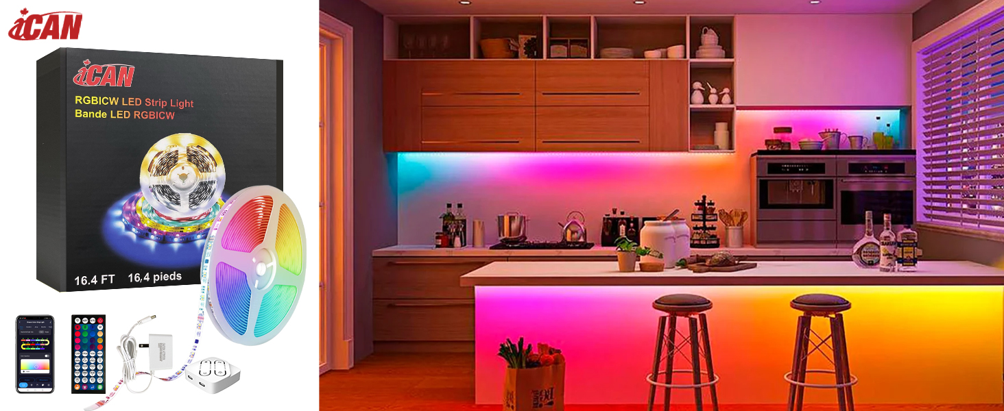 • iCAN RGBICW LED 16.4ft Strip Lights, App Control, Music Sync.