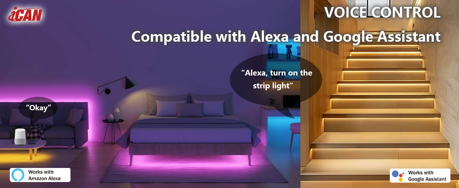iCAN RGBICW LED 16.4ft Strip Lights, App Control, Compatible with Alexa and Google Assistant, Music Sync, ​​Decorations for Home Party Rooms.