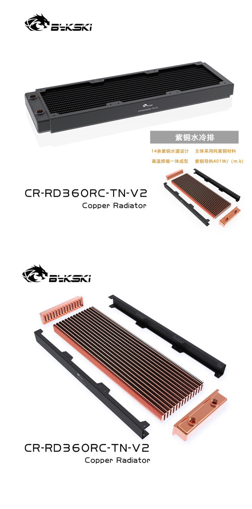 Bykski 360mm x 30mm RC Series Radiator, 120mm x 3, Triple Fan Black (CR-RD360RC-TN-V2)