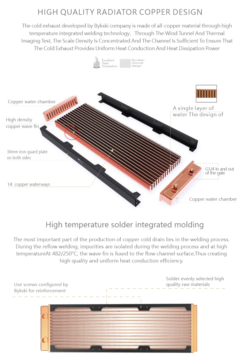 • Bykski 360mm x 30mm RC Series Radiator, 120mm x 3, Triple Fan Black