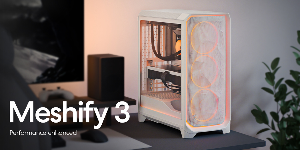 Meshify 3 is a performance PC case combining top-tier cooling with fluid, aerodynamic design.