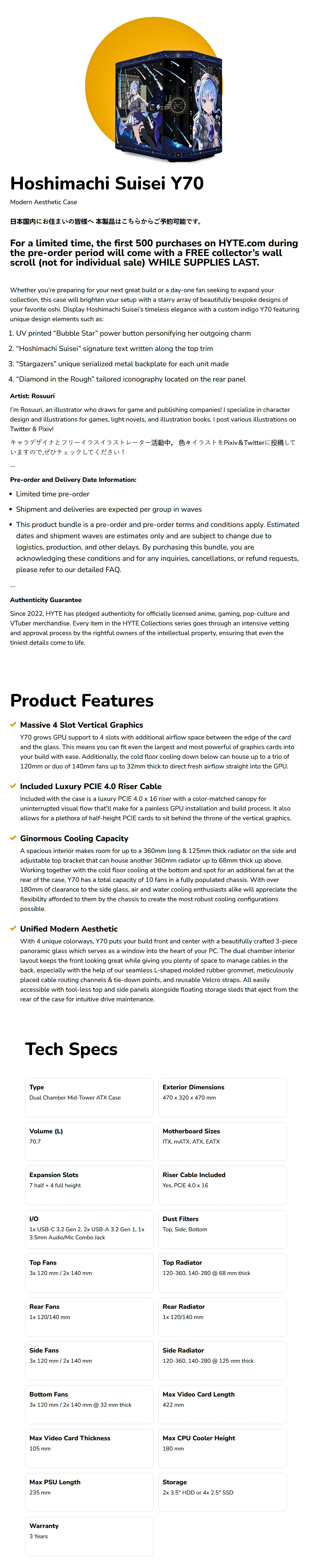 • HYTE Hololive - Hoshimachi Suisei Y70 Limited Edition Computer Case(with Wall Scroll)