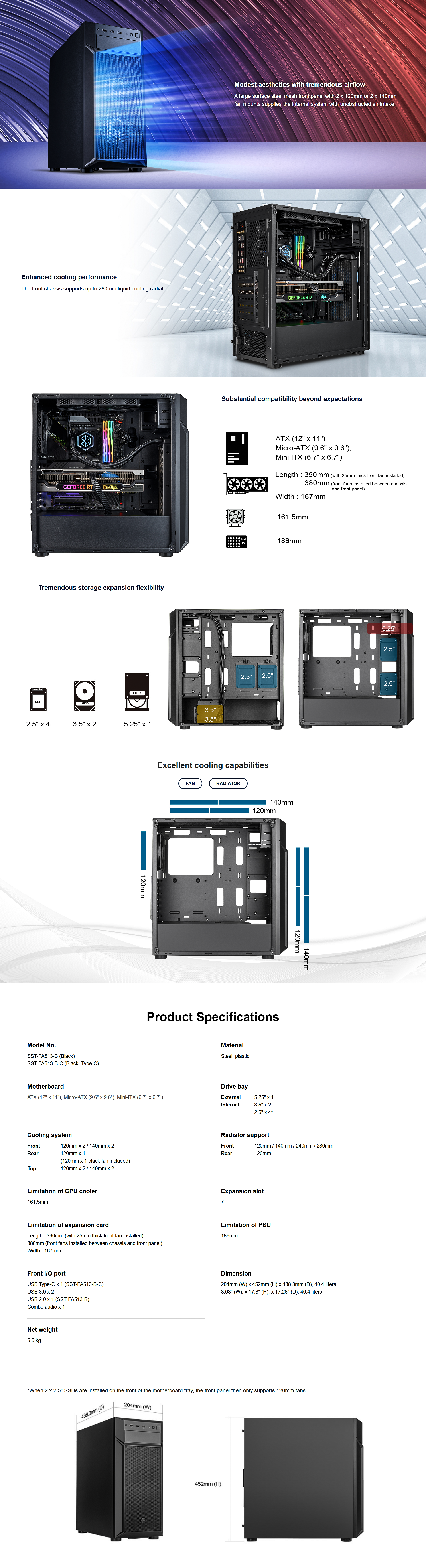 SilverStone FARA 513 Solid Panel Mid Tower Black (SST-FA513-B-C)